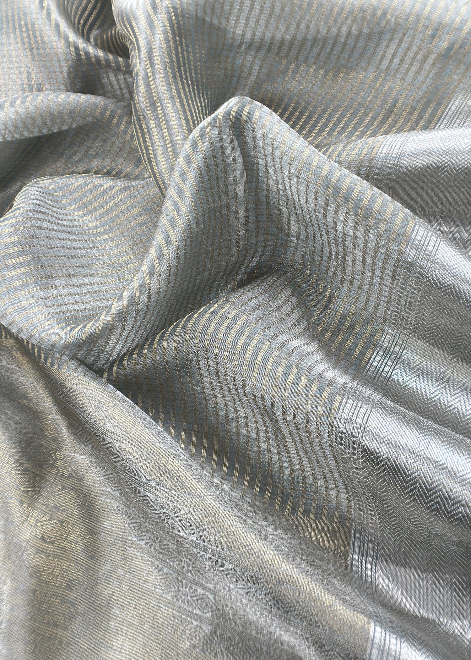 Pure Brocade silk Kurta with gold abstract weaving paired with Sona Rupa gold silver double zari weaving and matching cotton silk lowers.