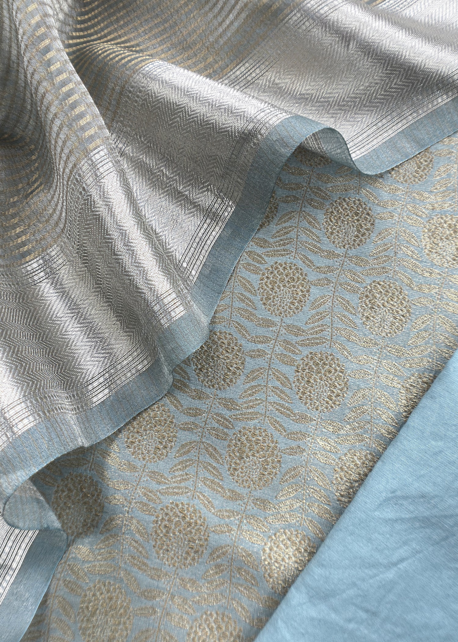 Blue Brocade Silk Kurta And Zari Panel Silk Dupatta