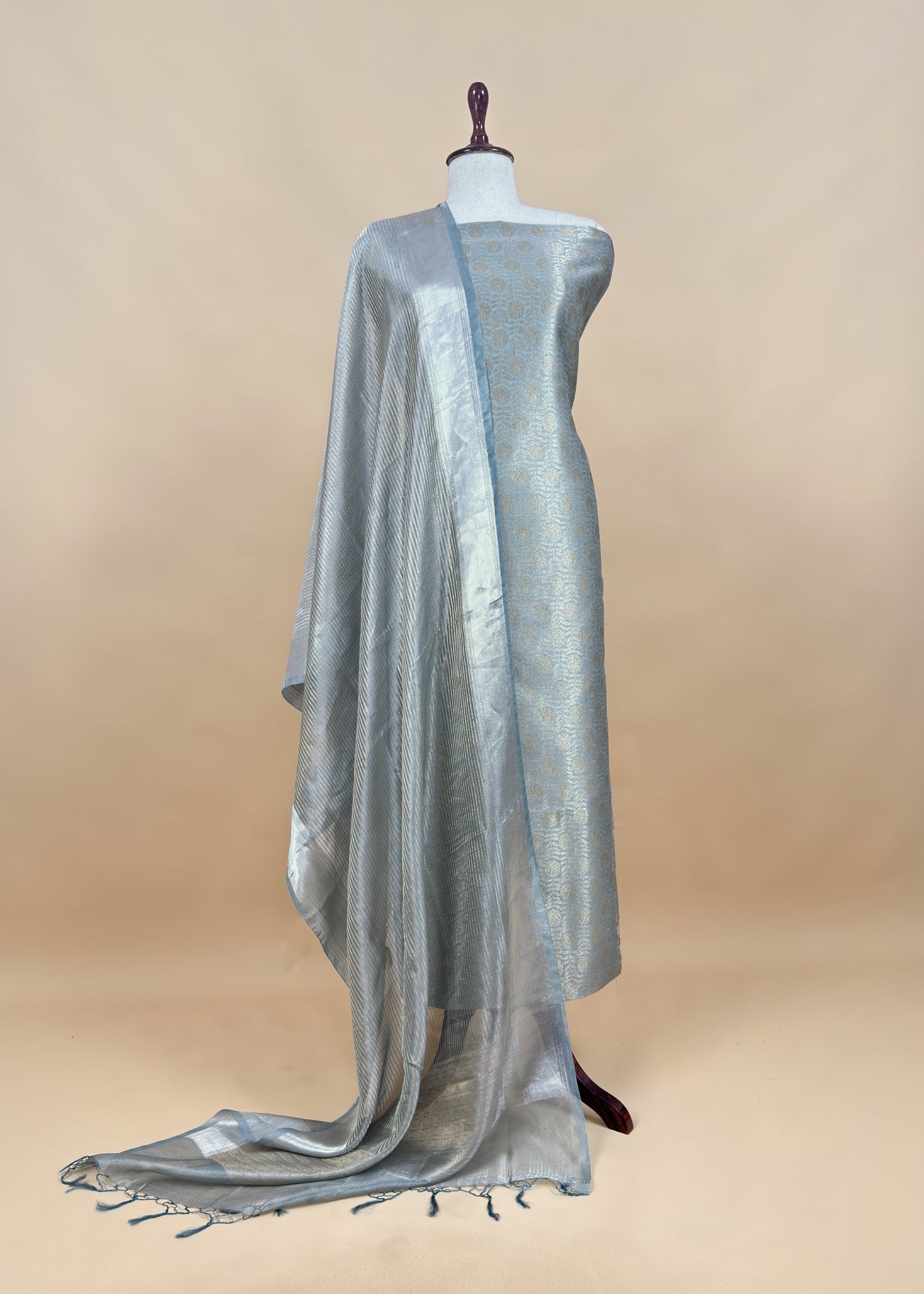 Only dry cleaning is recommended for this fabric to maintain its vibrant colors and ensure gentle care, preventing shrinkage or fading. Treat your Kalasheel dupatta suit with love and pass it on as a cherished family heirloom.