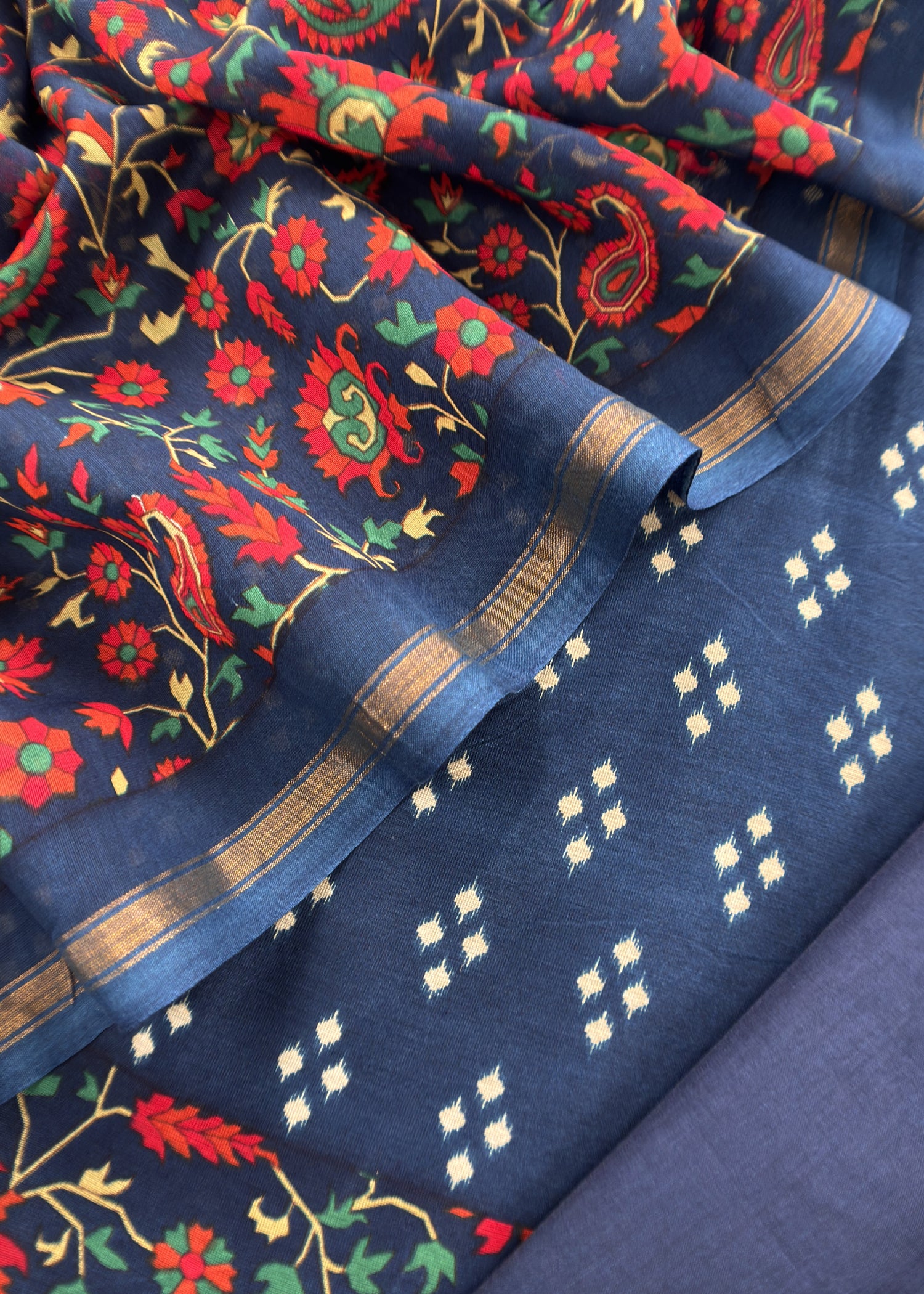Blue Maheshwari Silk Unstitched Suit With Bandhani And Kani Print