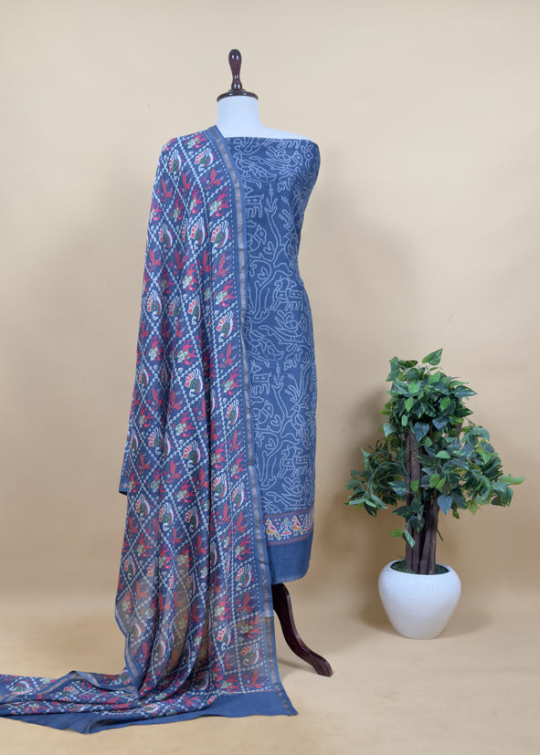 Blue Maheshwari Silk Unstitched Suit With Bandhani And Patola Print