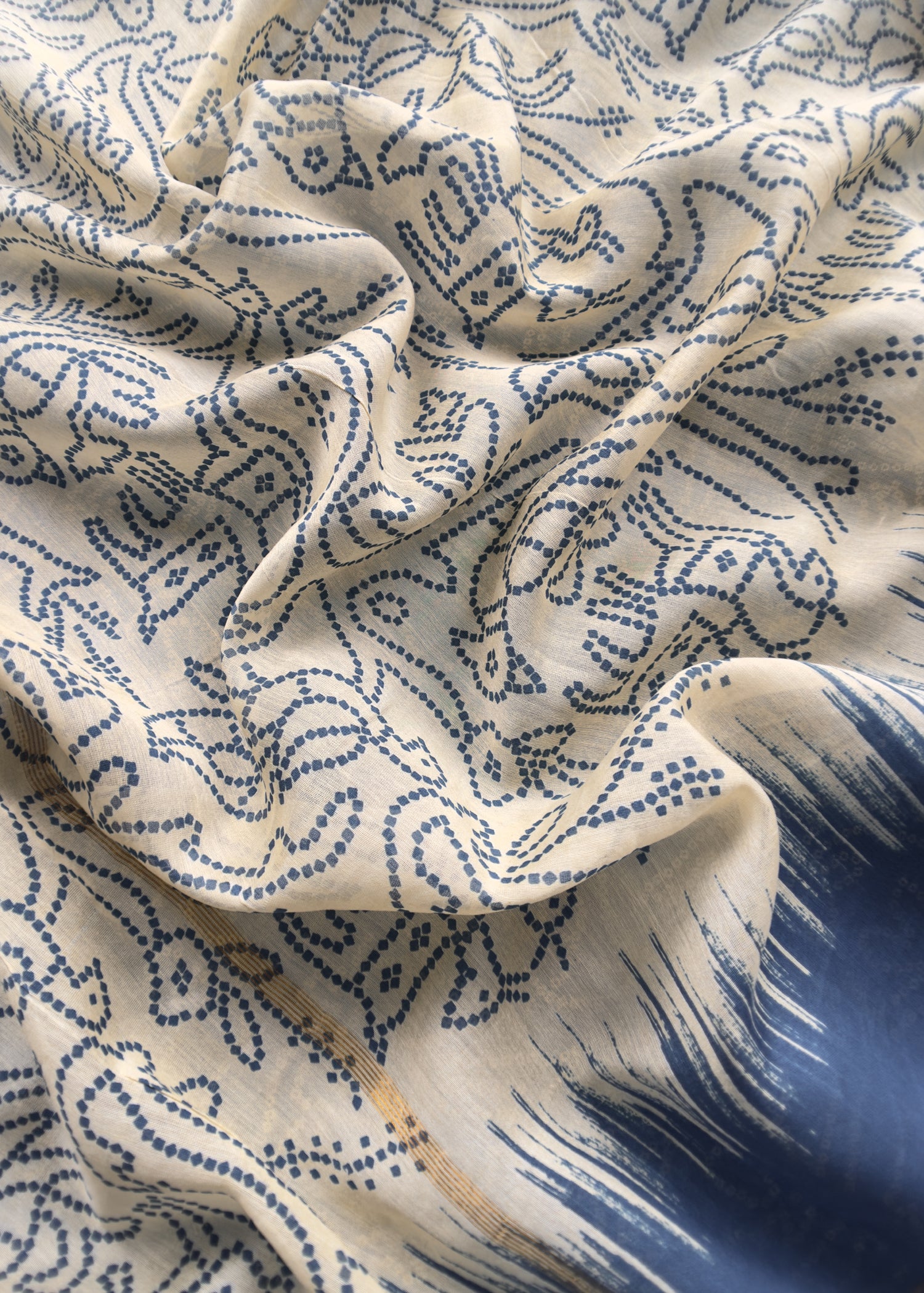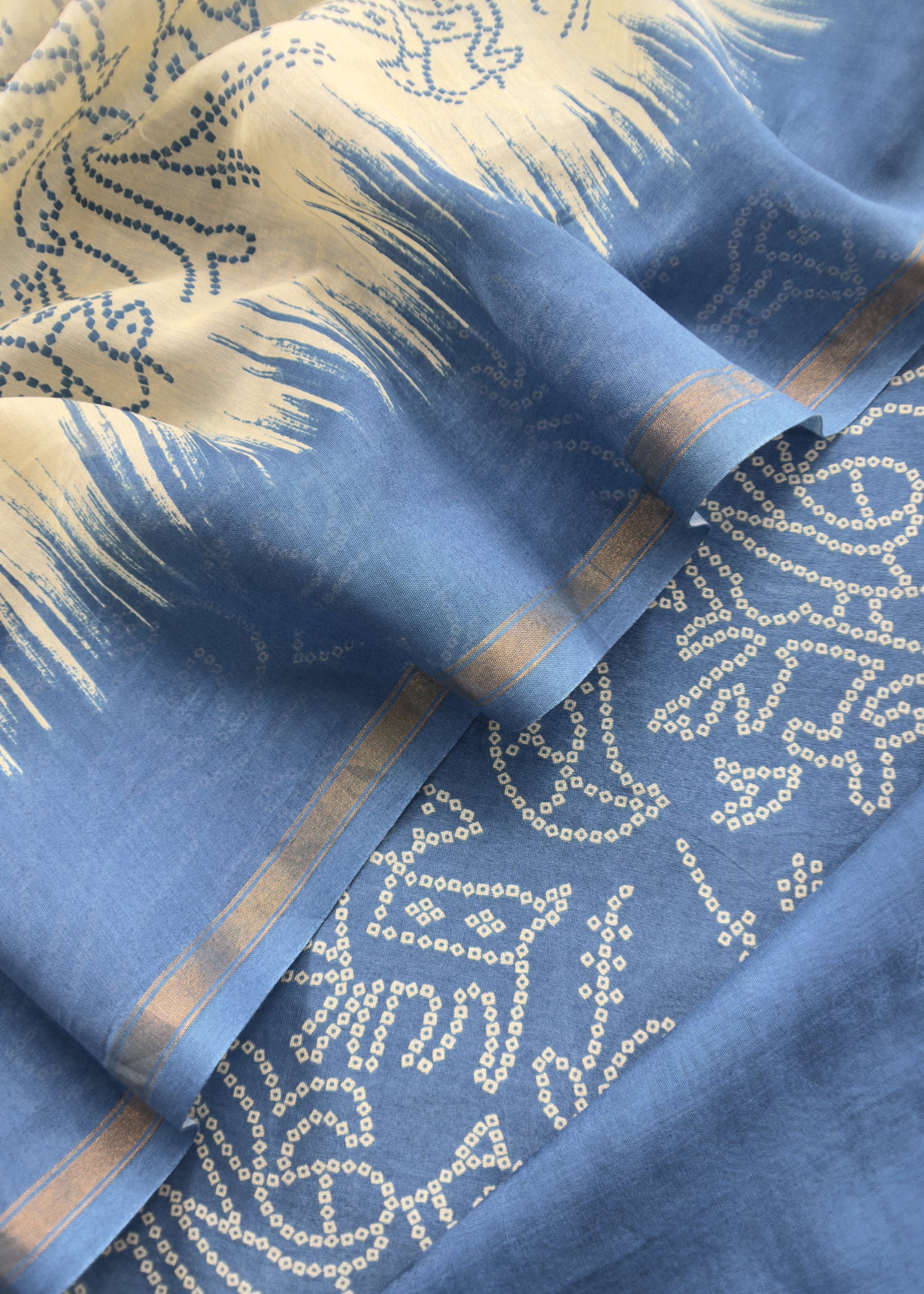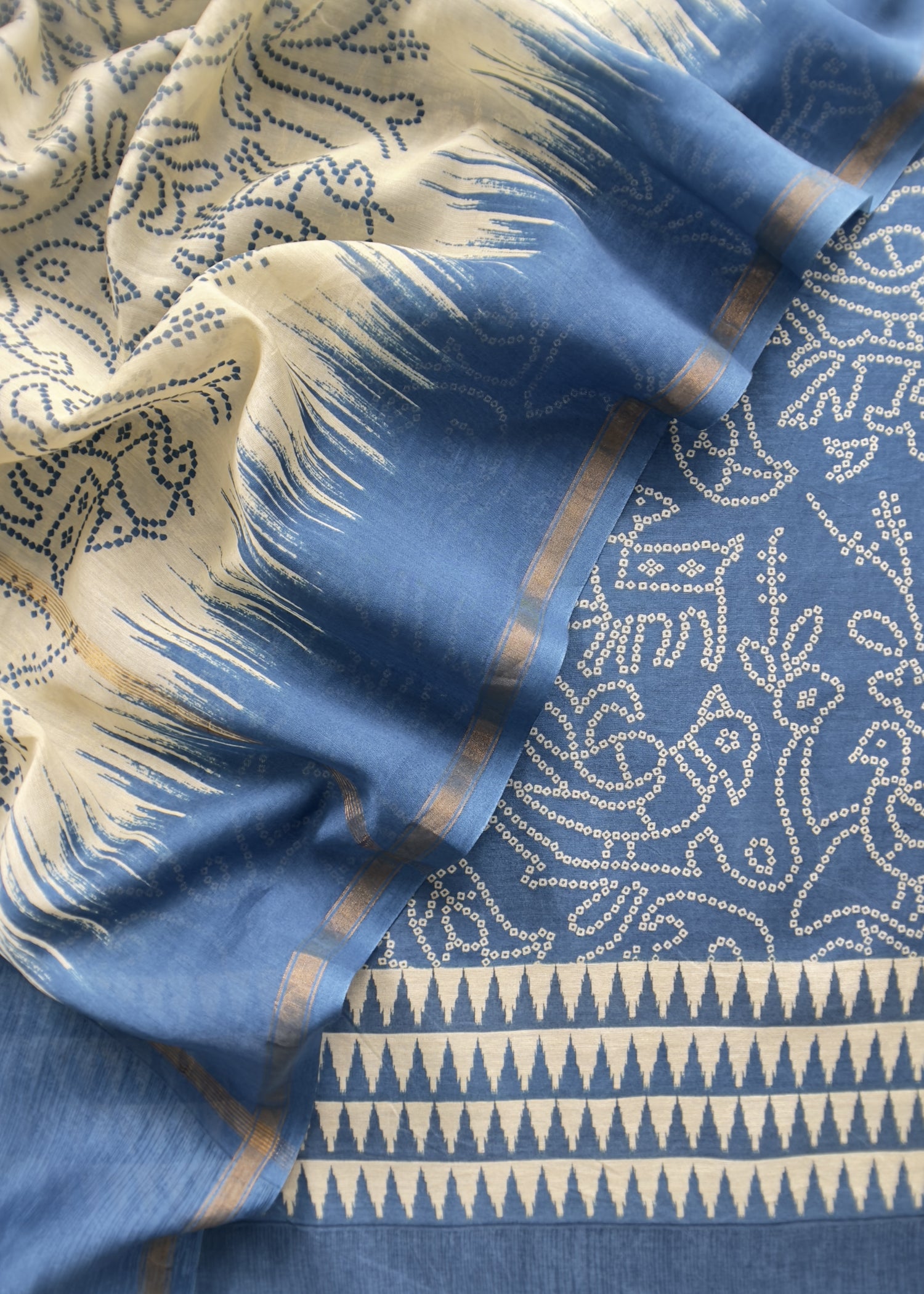 Blue Pure Maheshwari Silk Suit Fabric With Bandhani Dupatta