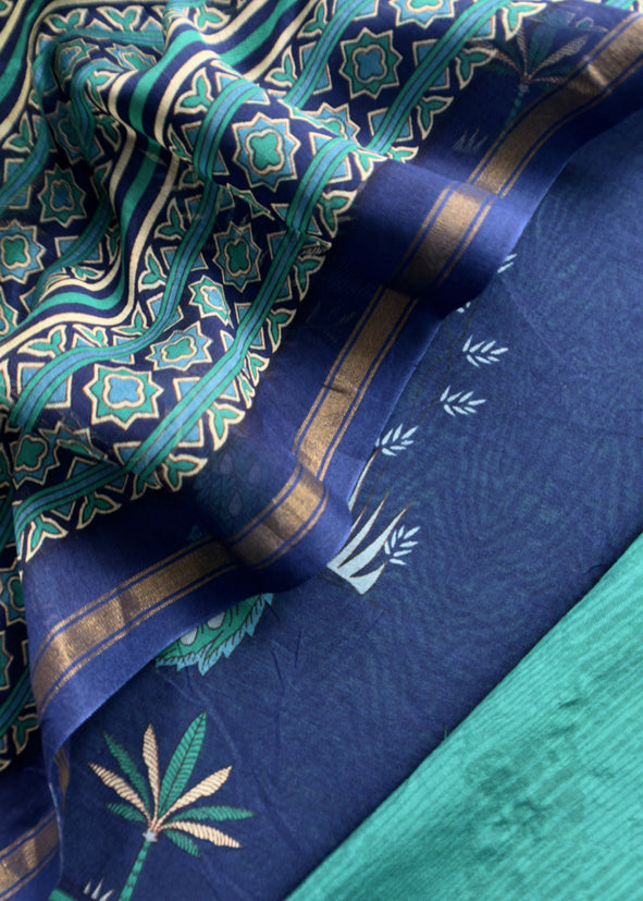 Blue Pure Maheshwari Silk Unstitched Suit Fabric with Shikagarh Print