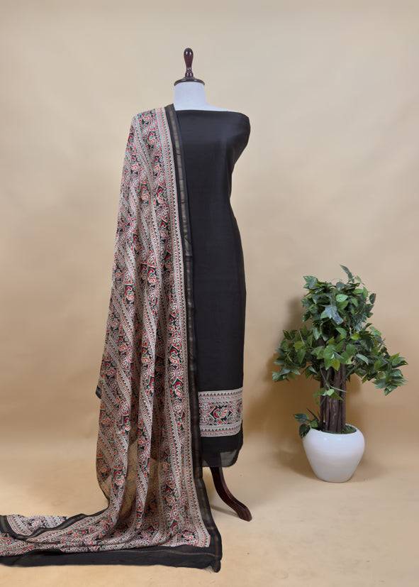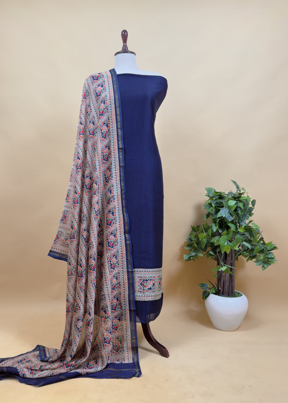 Blue Pure Maheshwari Unstitched Suits With Patola Dupatta