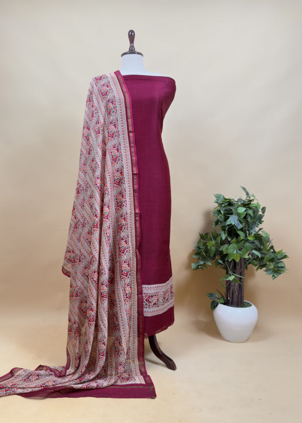 Formal Indian ethnic suit sets in pure Maheshwari silk — perfect for weddings, festive occasions, and year-round celebrations.