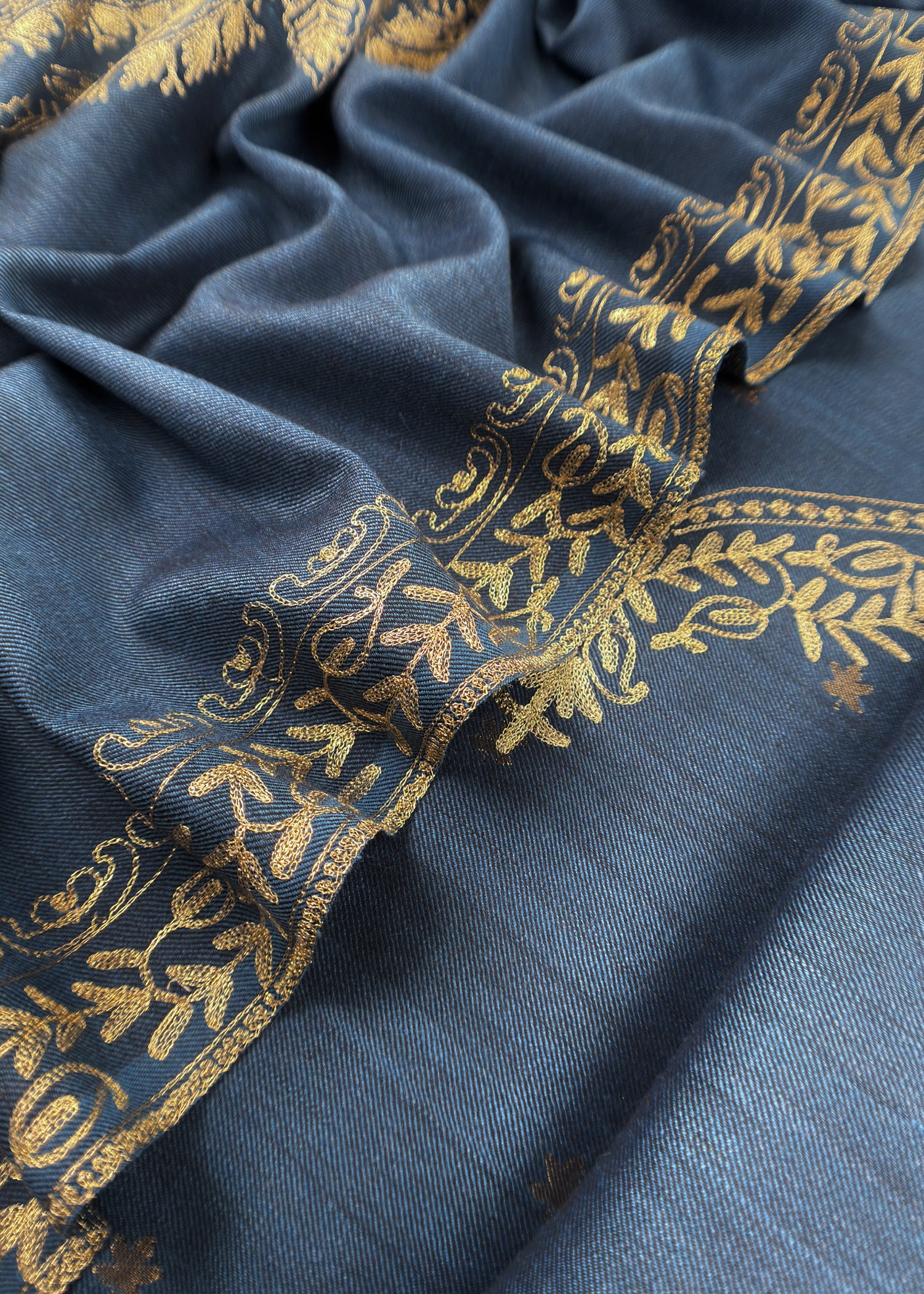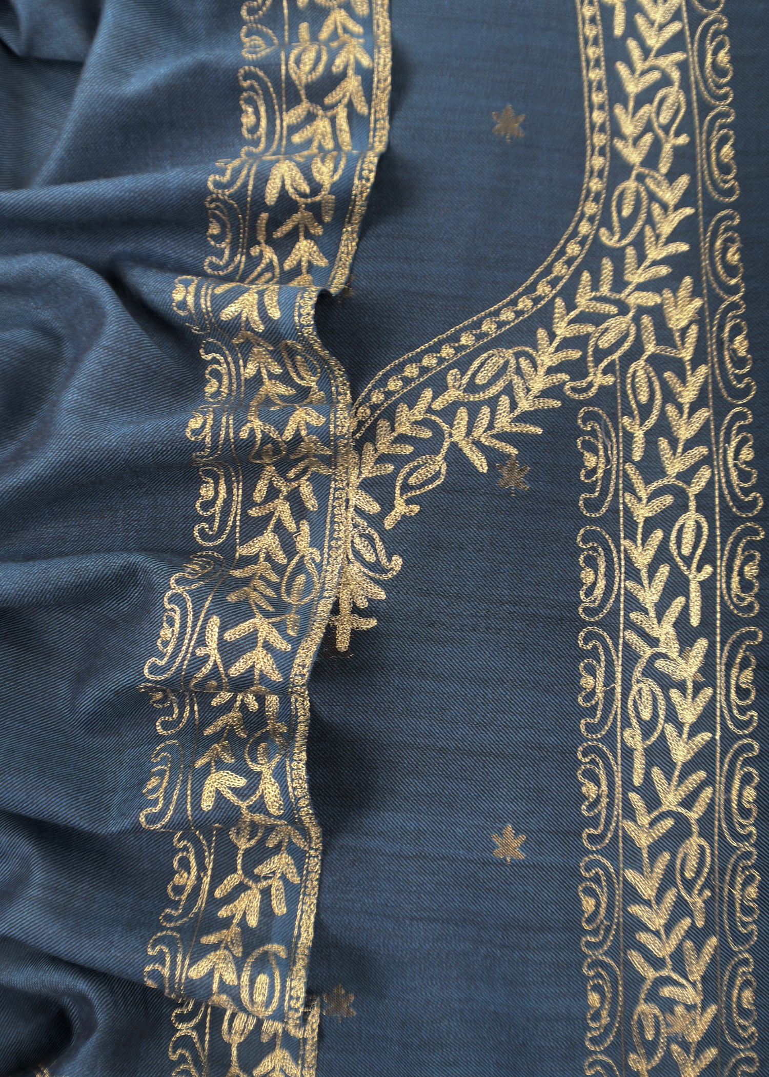 Blue Pure Merino Wool Suit With Kashmiri Aari Embroidery