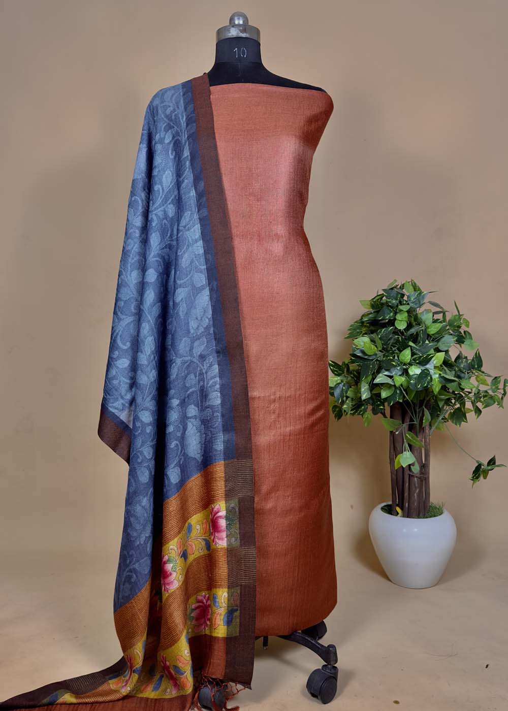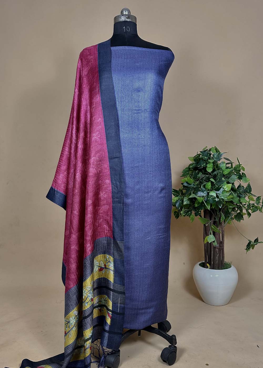 Blue Pure Pashmina Suit With Kalamkari Dupatta