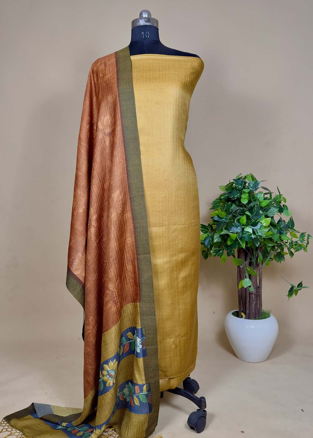 Pure pashmina vibrant plain kurta with pure pashmina kalamkari print dupatta and plain bottom.