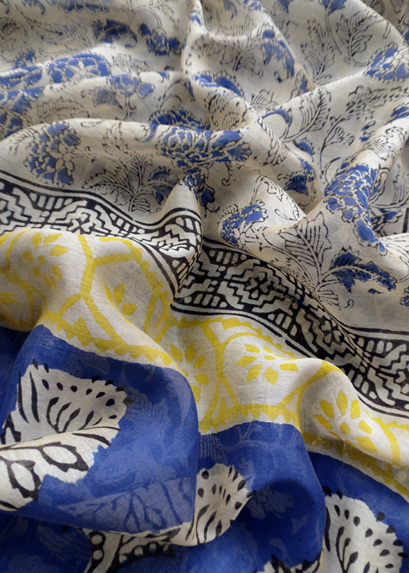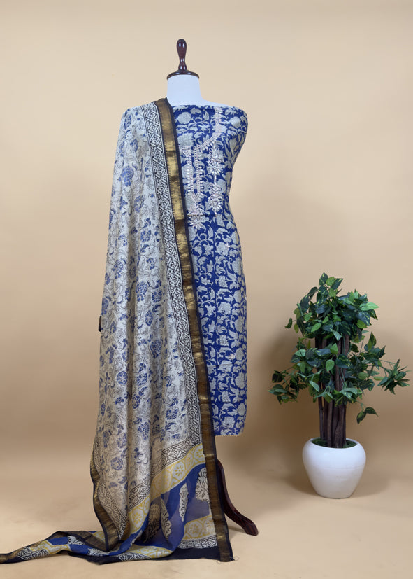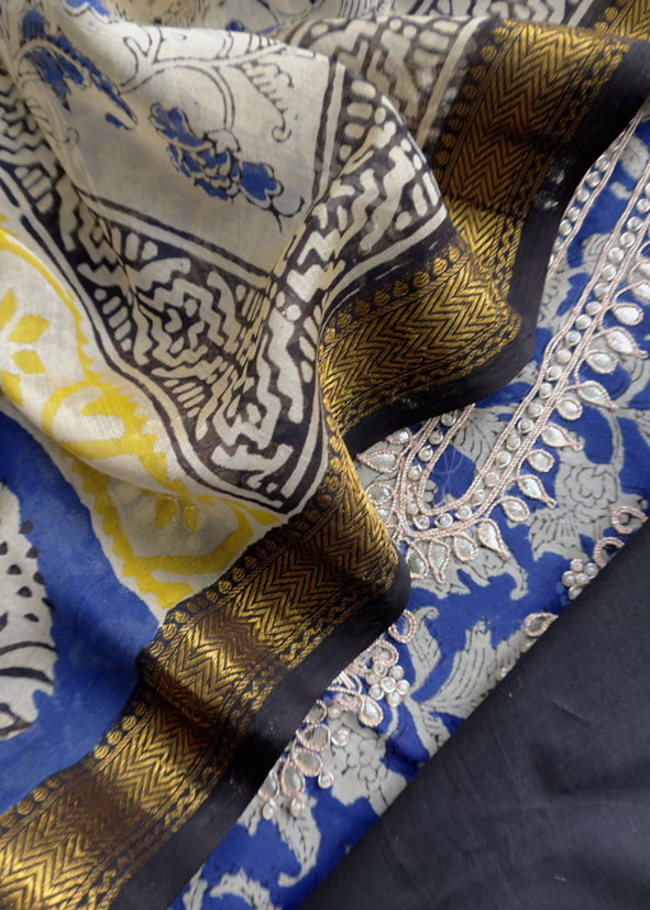 Blue Sanganeri Hand-Blocked Kalamkari Suit With Gota Patti Embroidery