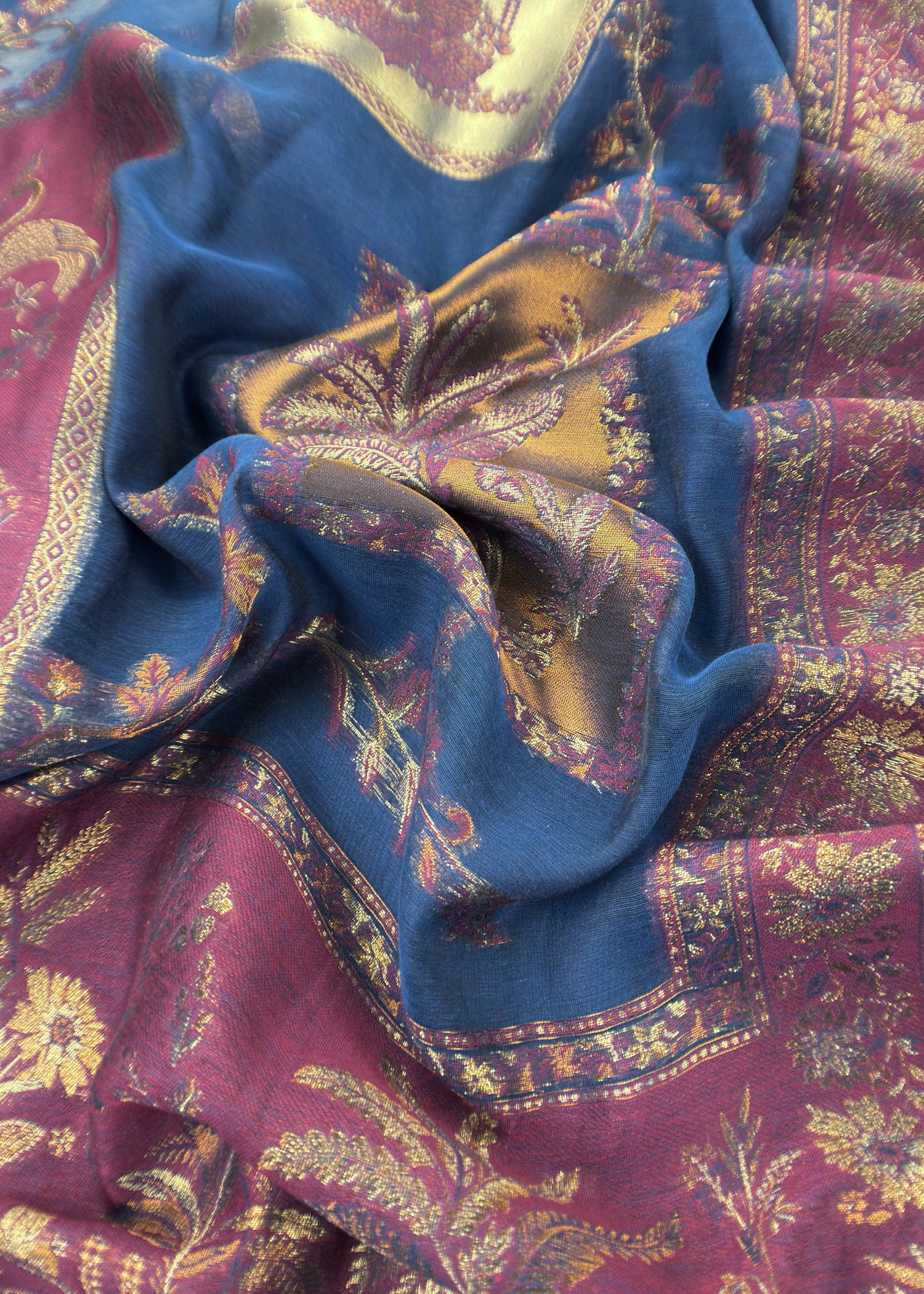 Blue Unstitched Satin Silk Suit With Kani Weaving