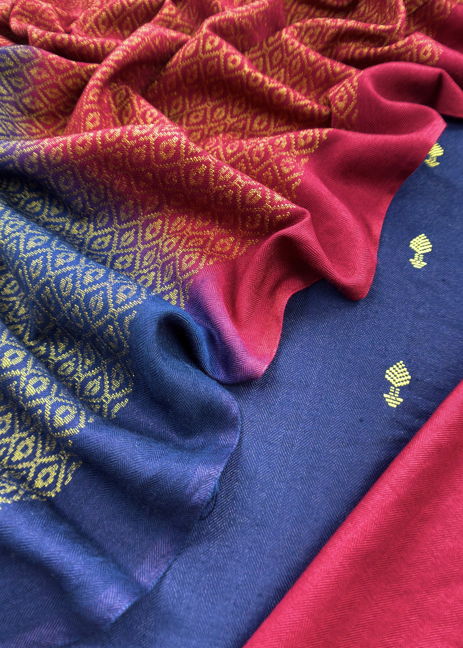 Blue Winters Woolen Pashmina Suit Fabric With Zari Weaving