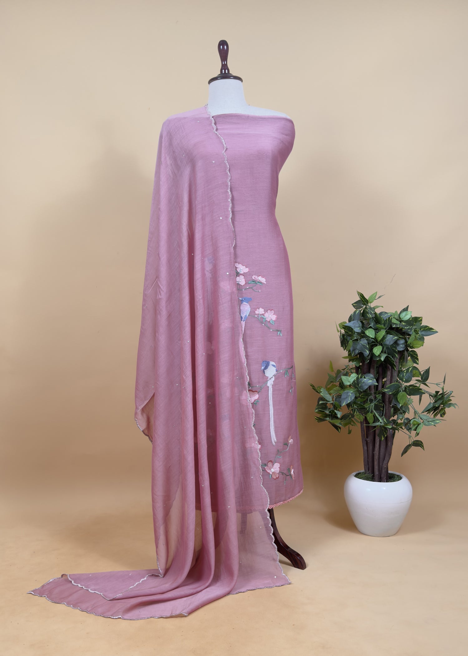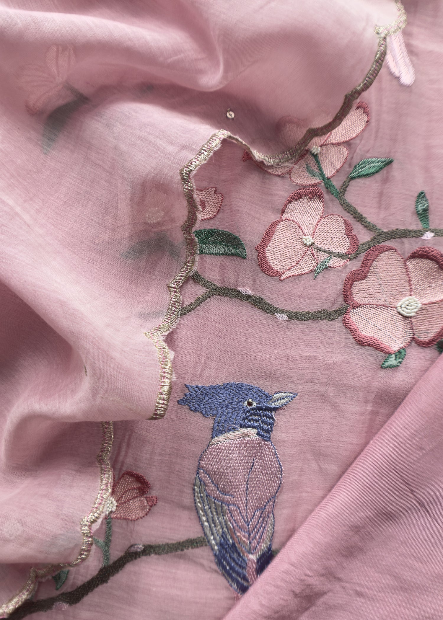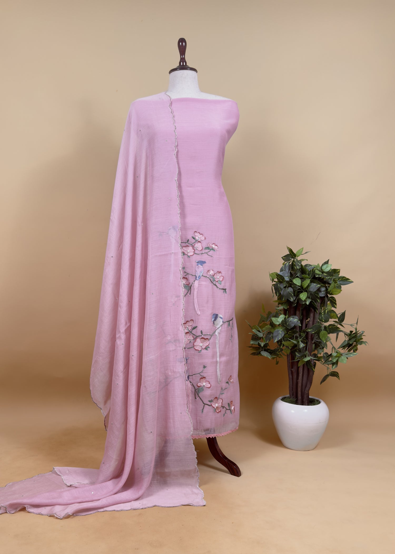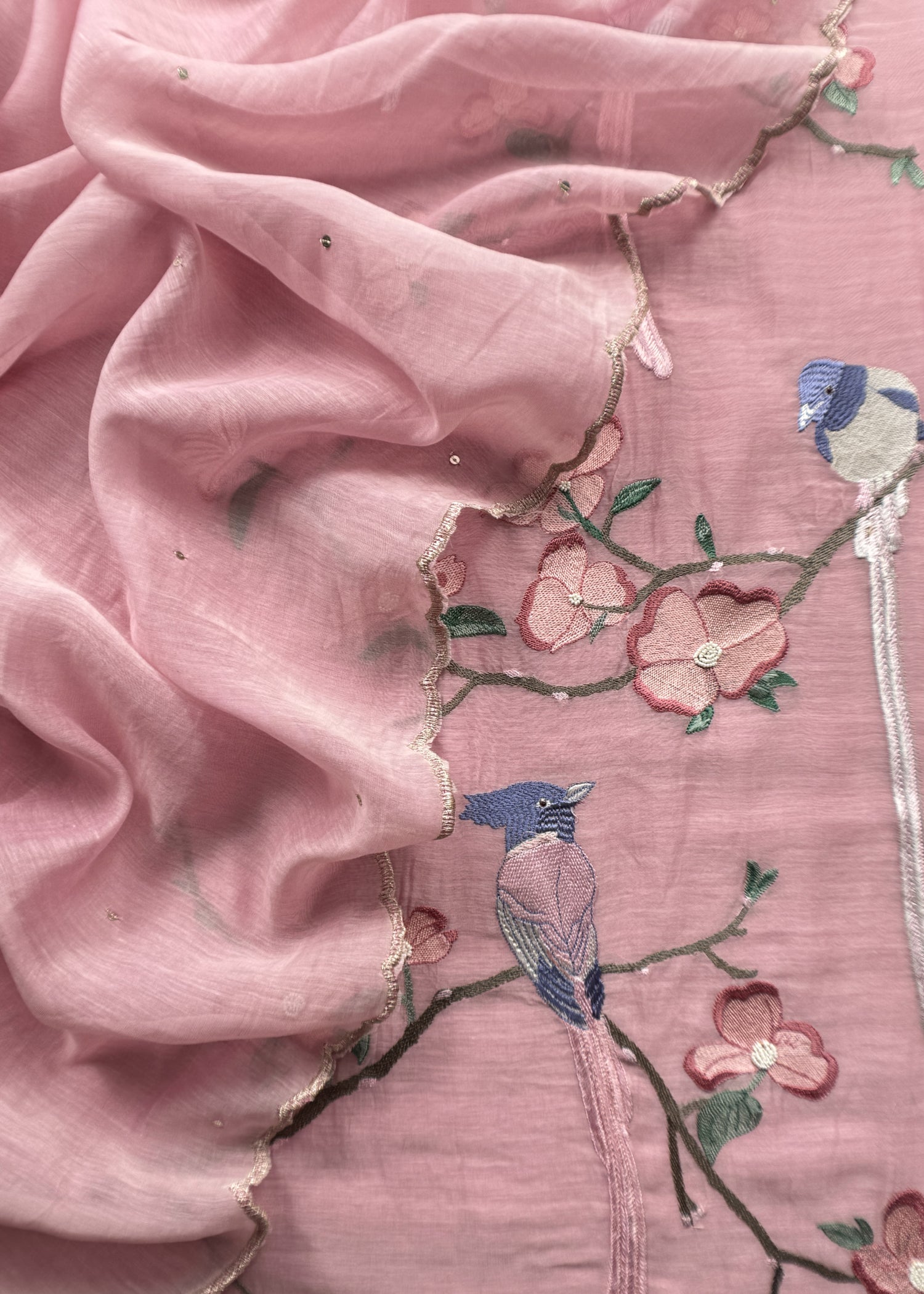 Blush Pink Pure Mul Parrot Suit With Resham Embroidery, Sequins And Pearls