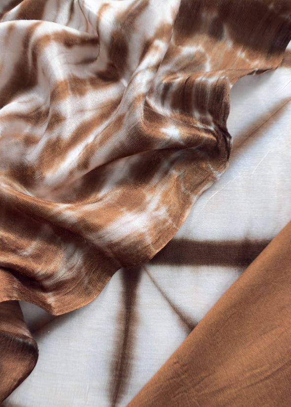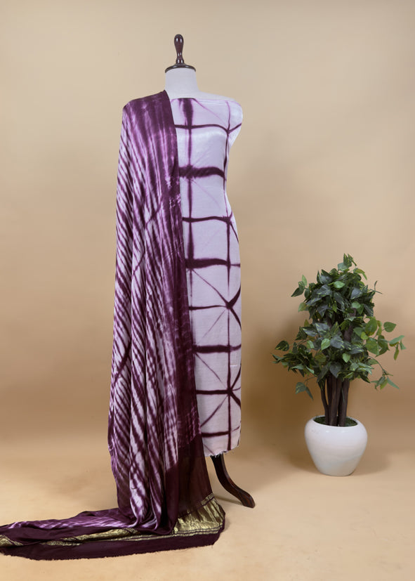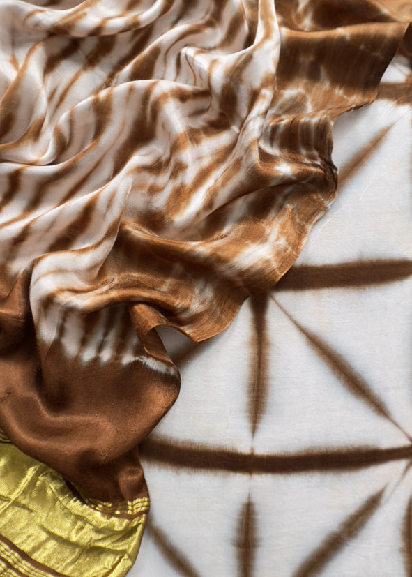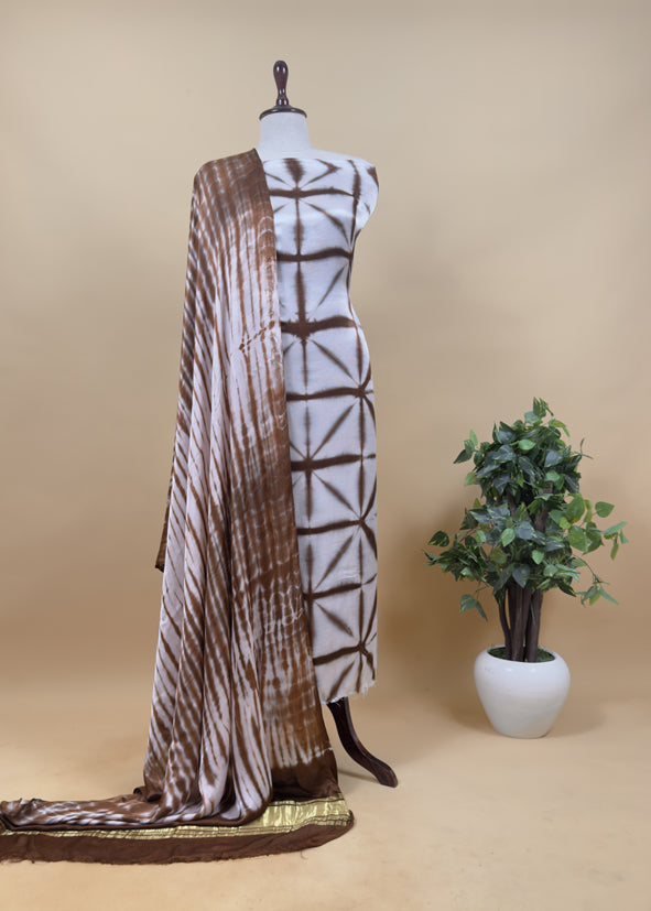 Brown Hand-Dyed Shibori Print Pure Gajji Silk Suit With Zari Border