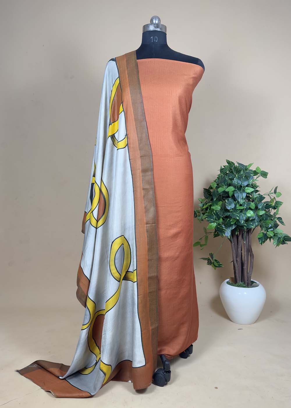 Plain Pashmina kurta and bottom adorned with beautiful handpainted dupatta.
