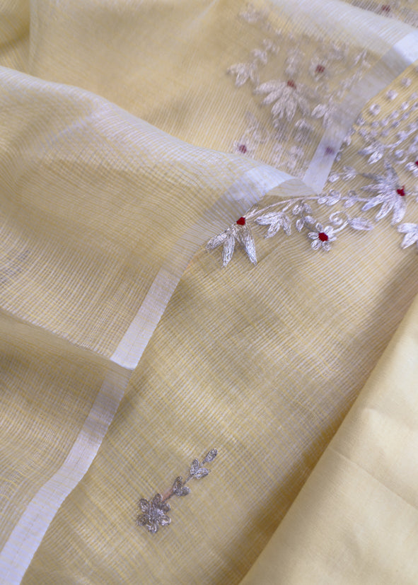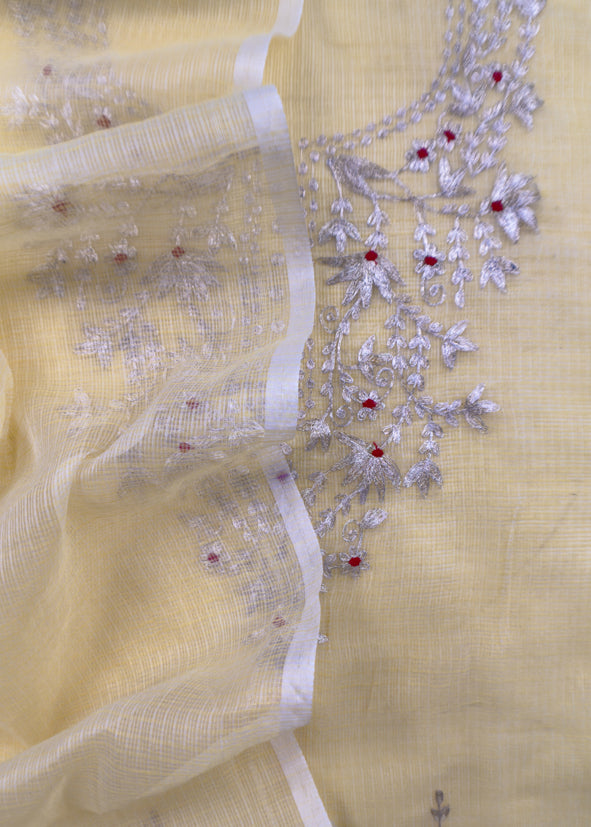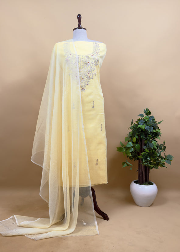 Butter Yellow Kota Doria Dupatta Suit with Pitta Work