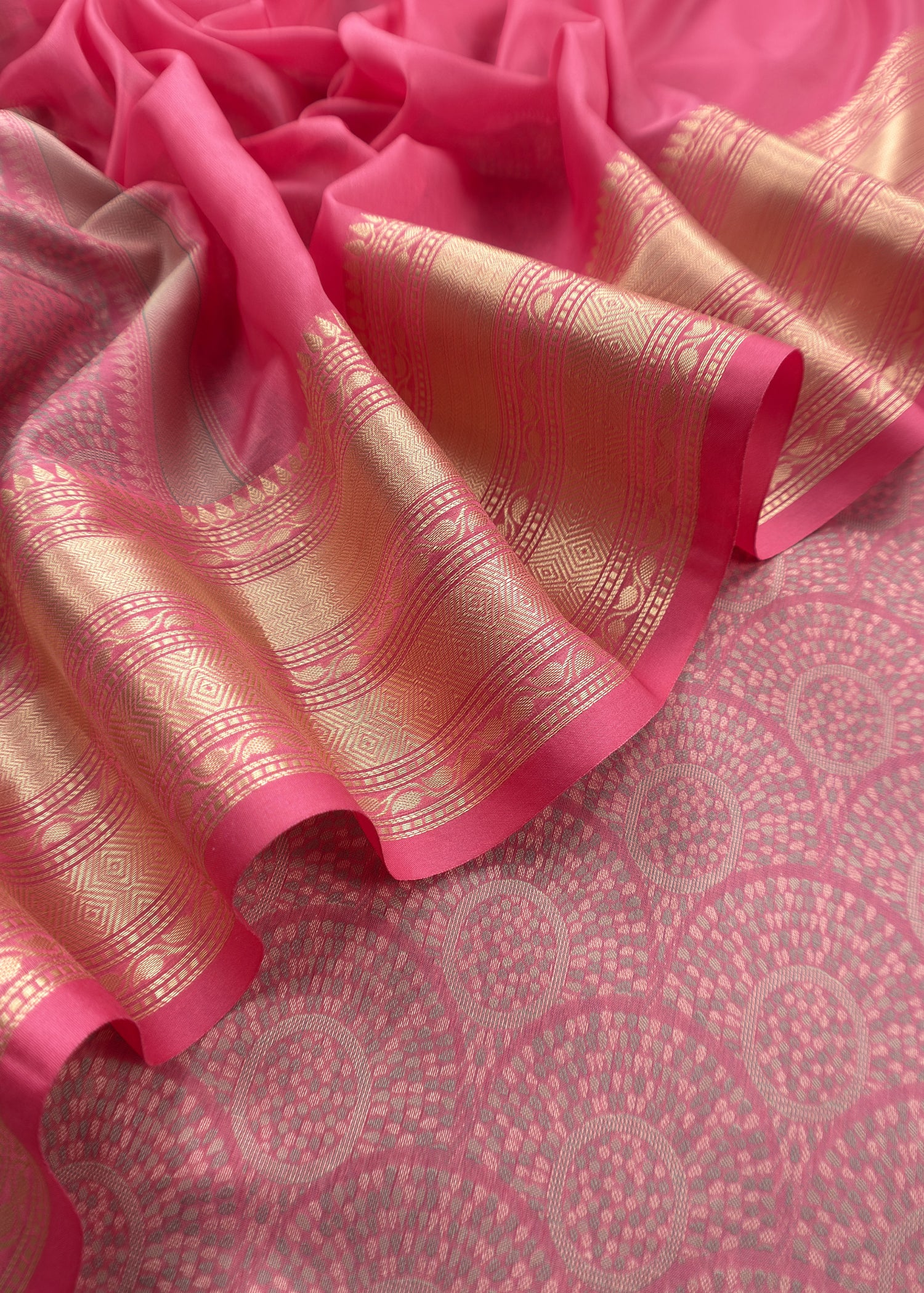 Candy Pink Pure Silk Suit with Meenakari multicolour weaving