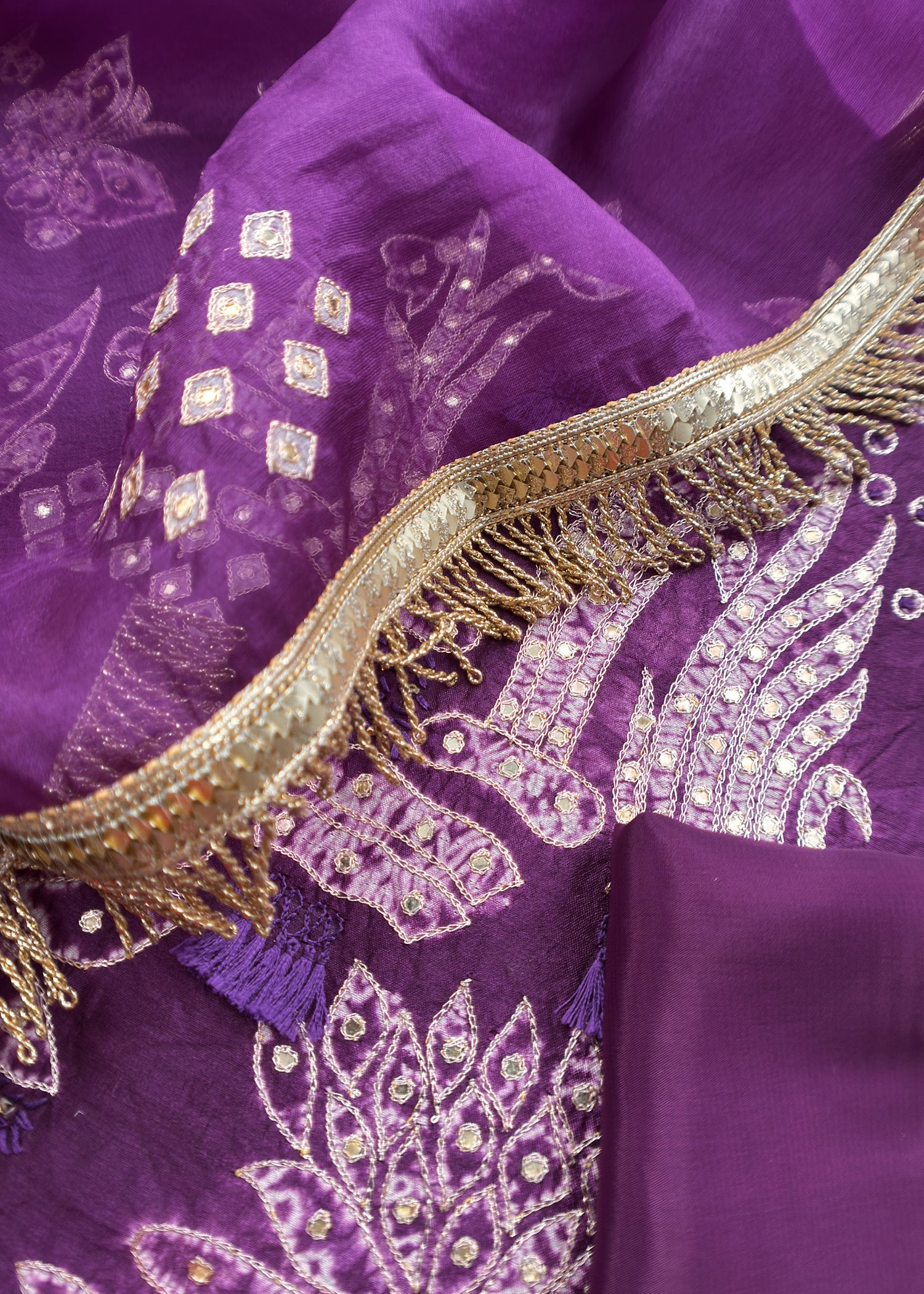 Purple Pure Chiniya Silk Kurta and Tissue Silk dupatta with Handwork