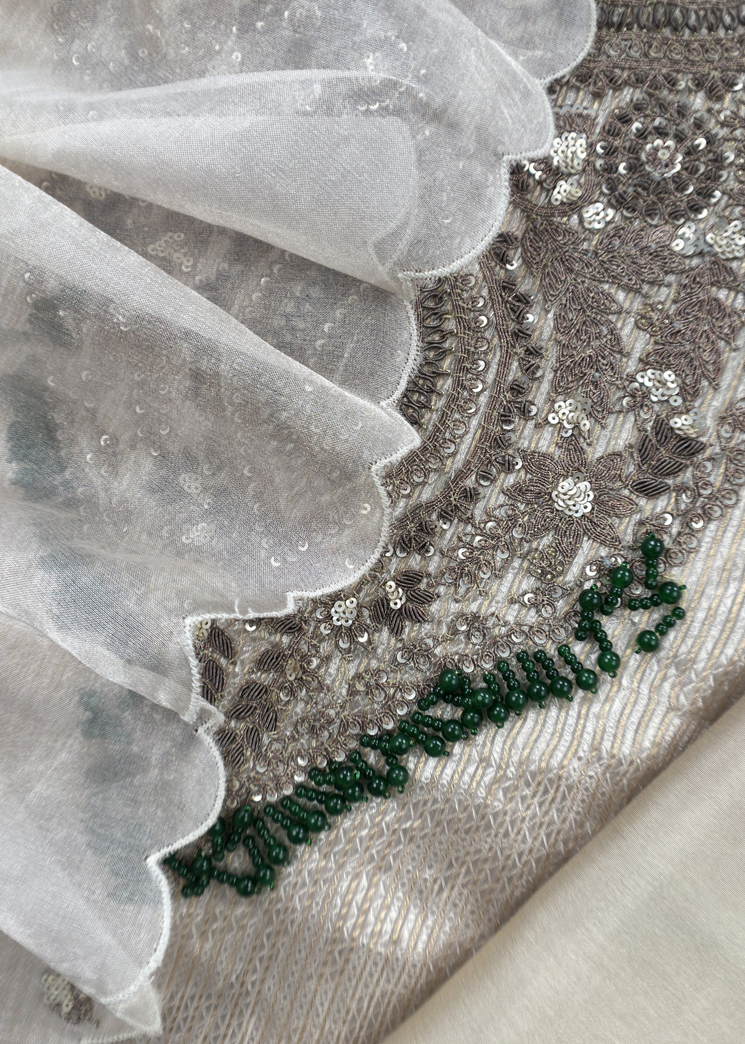 Champagne Beige Handloom Tissue silk kurta and Tissue Silk Dupatta with Dori Dabka handwork