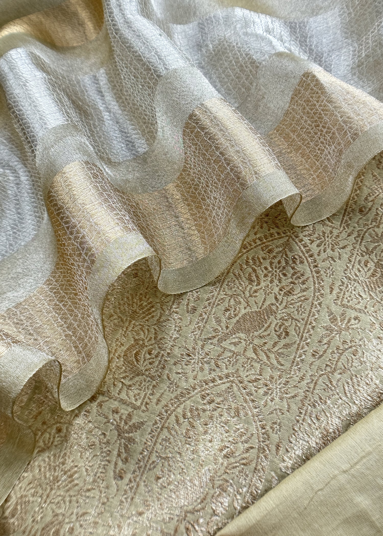 Pure brocade silk kurta with tissue panel dupatta with gold lured zari weaving and matching cotton silk lowers.