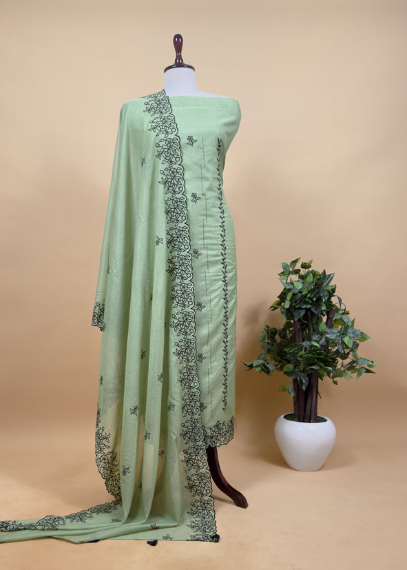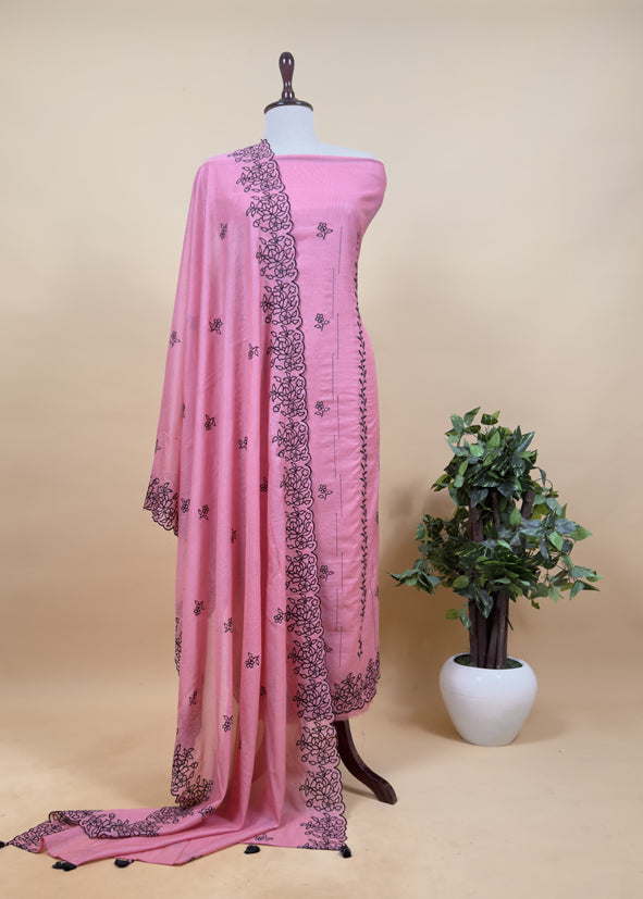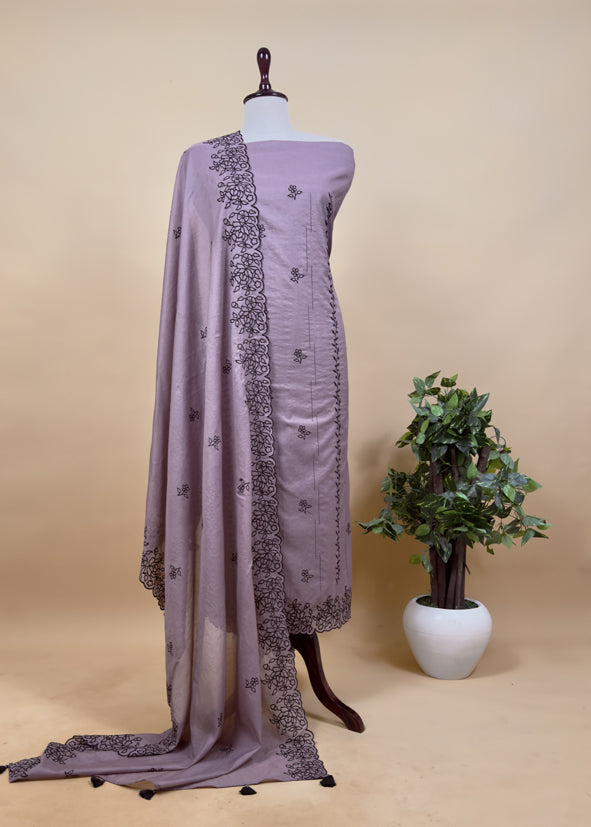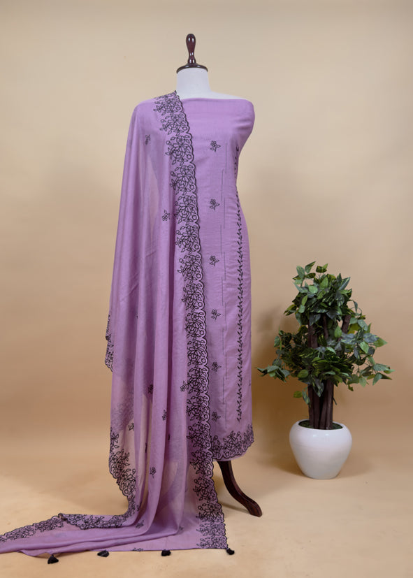 Chinese Violet Mul Chanderi Suit With Embroidery