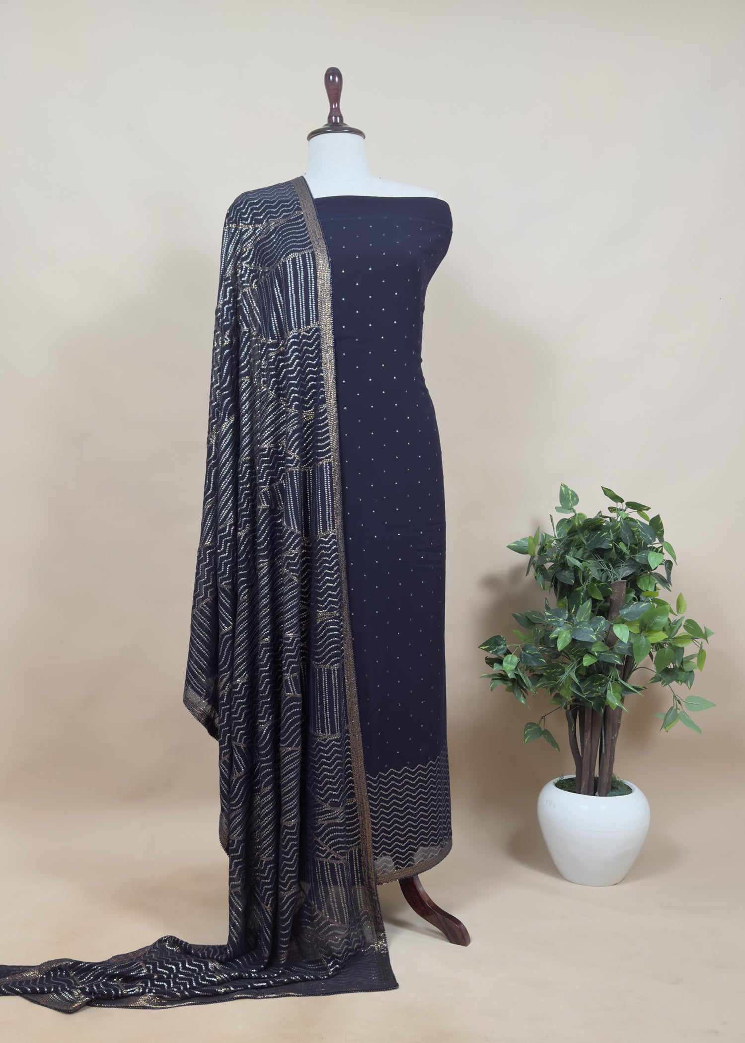 Classy Midnight Blue Sequin Pure Georgette Unstitched Suit