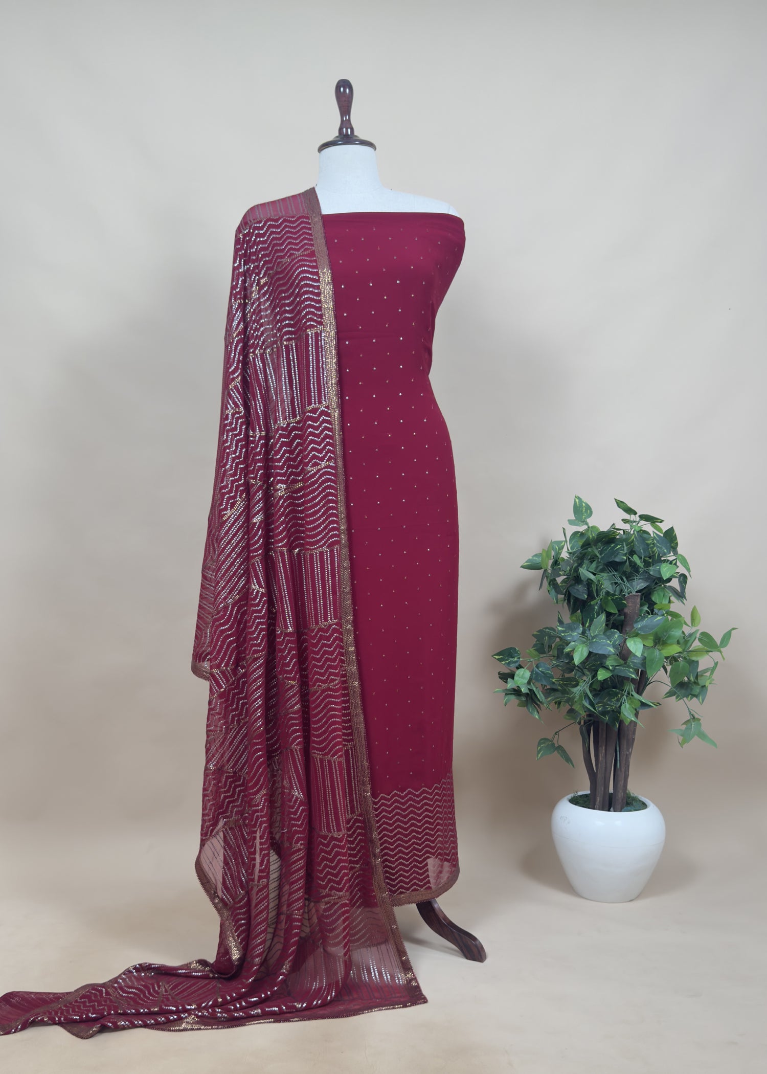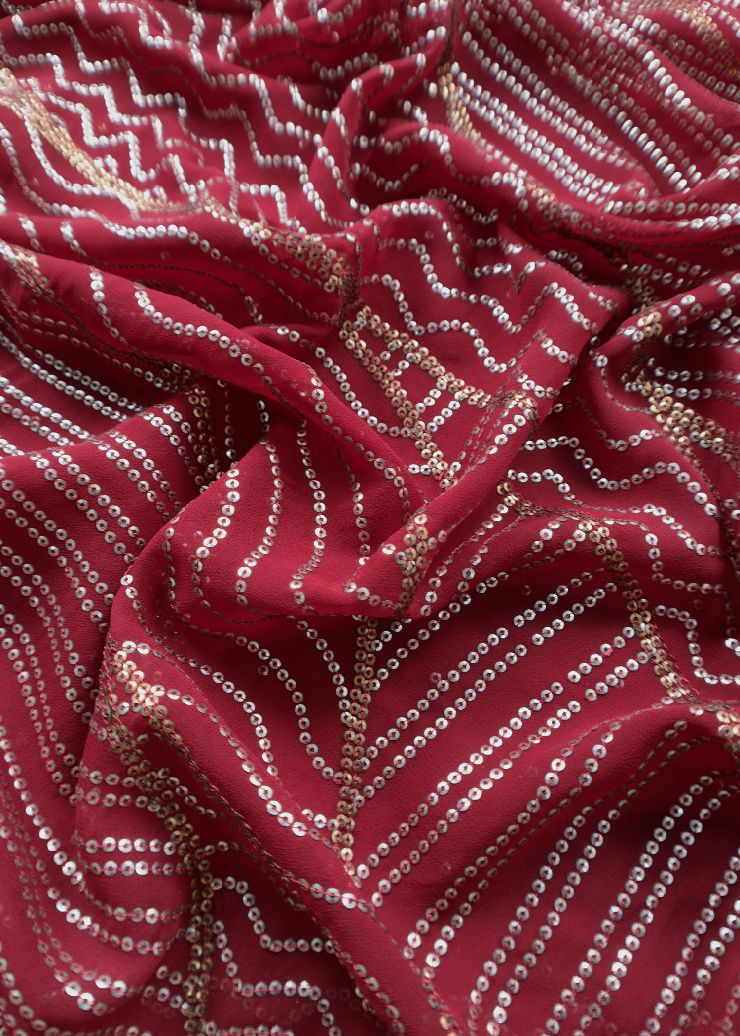 Classy Red Sequin Pure Georgette Unstitched Suit