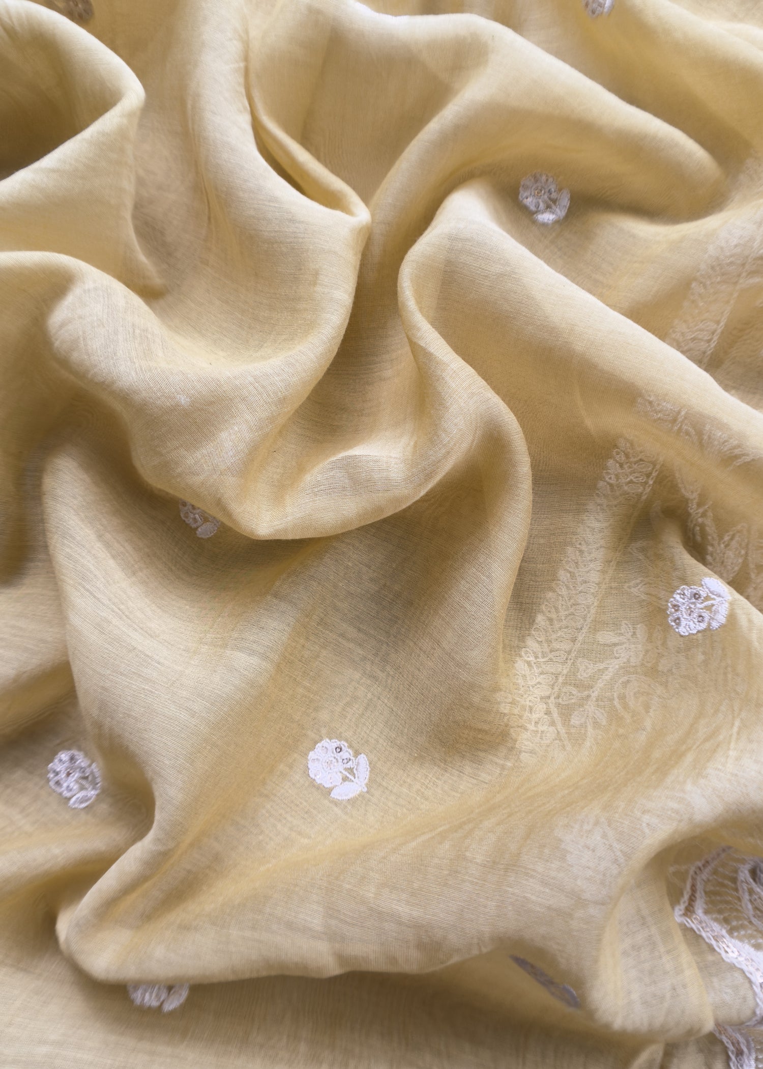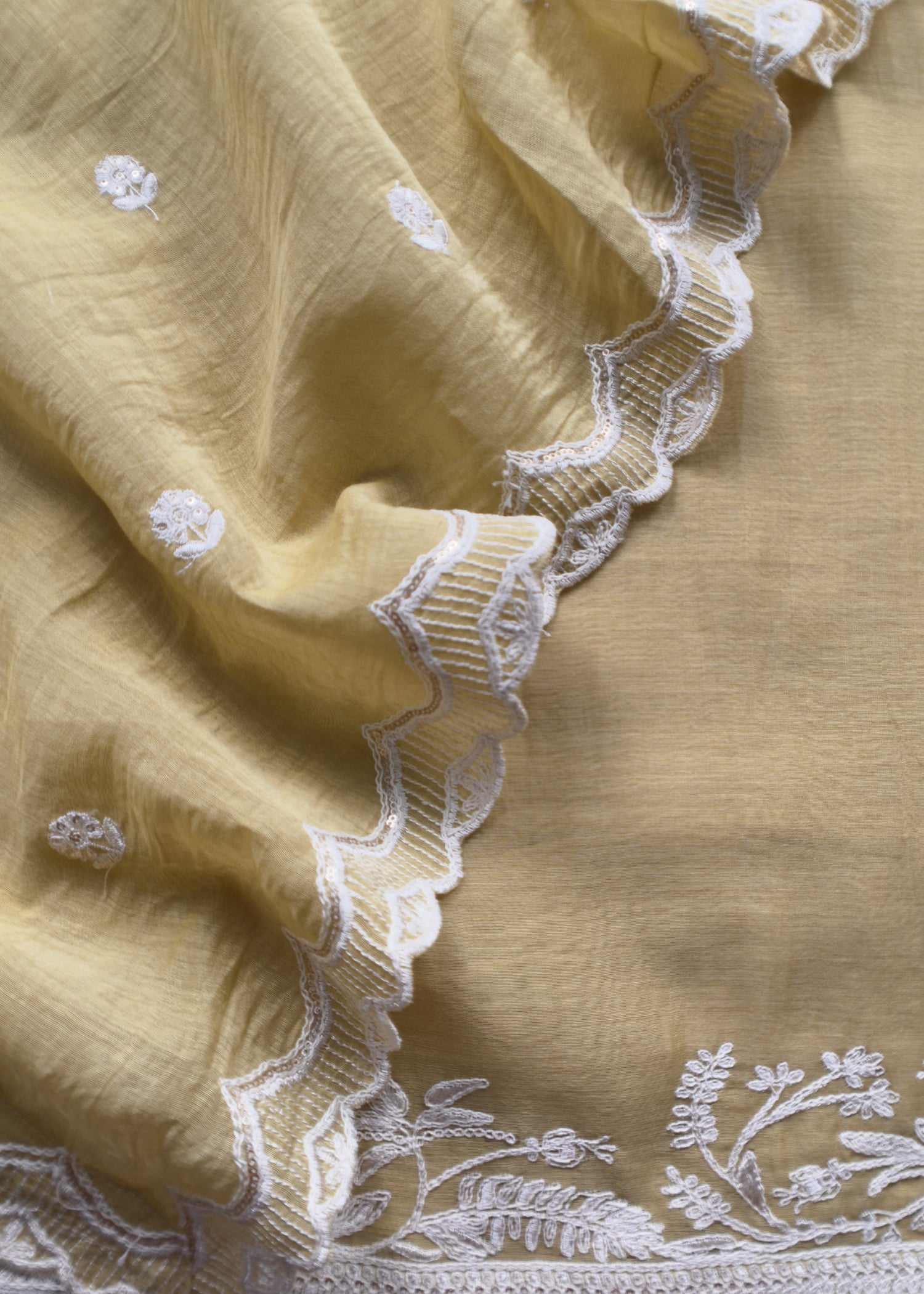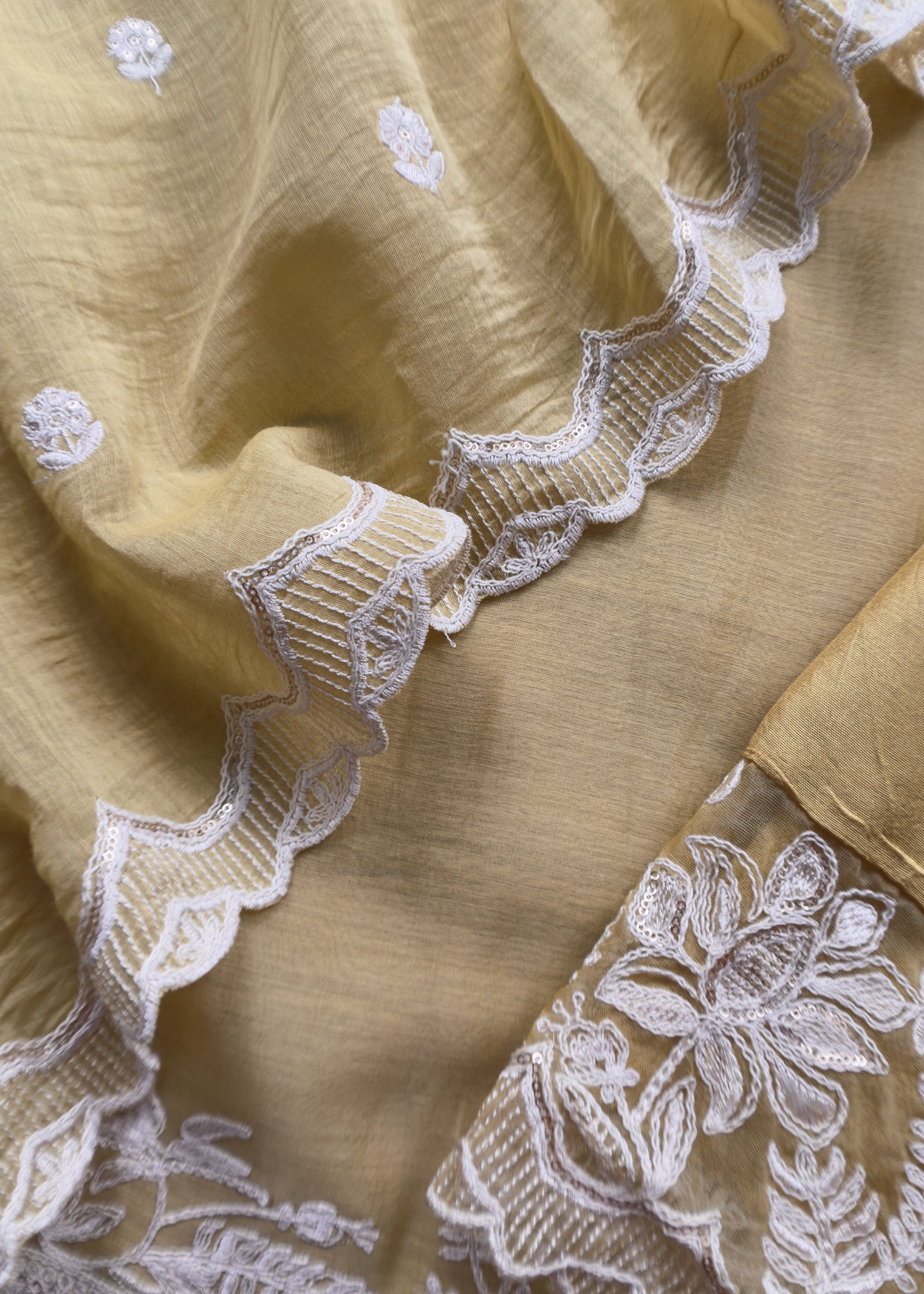 Corn Yellow Pure Mul Chanderi Suit Fabric With French Thread Embroidery