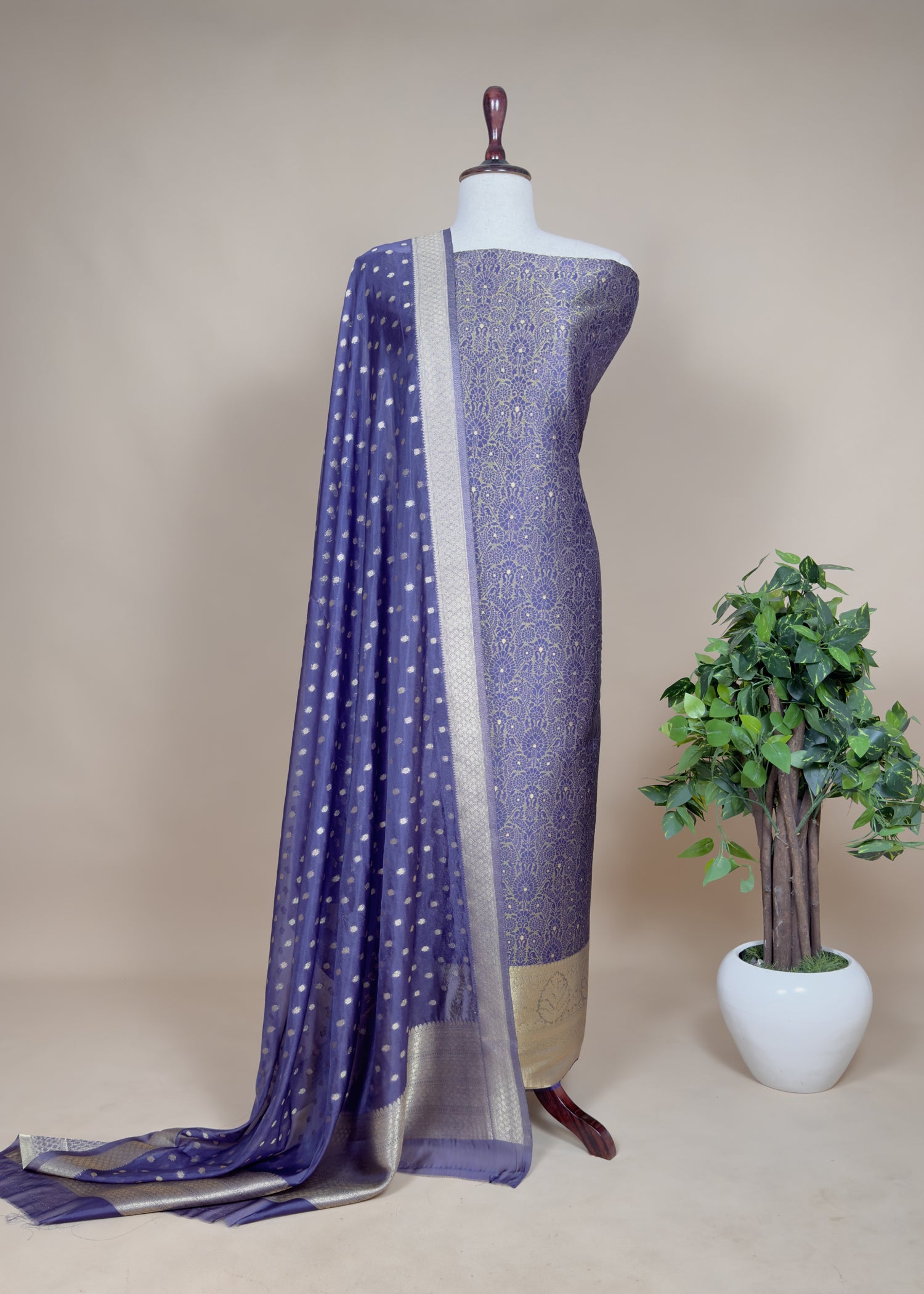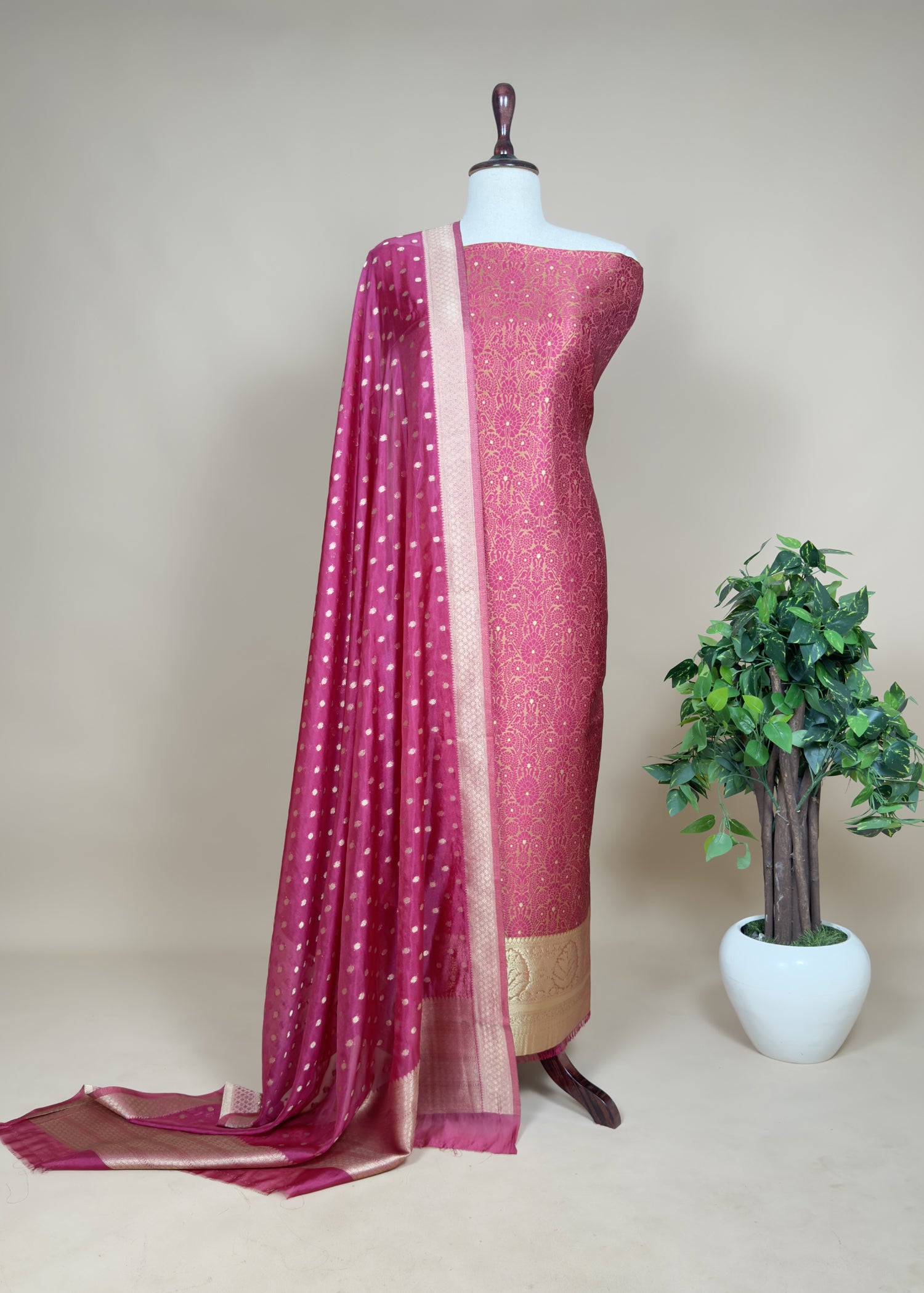 Dark Green Banarasi Silk Brocade Suit With Organza Dupatta