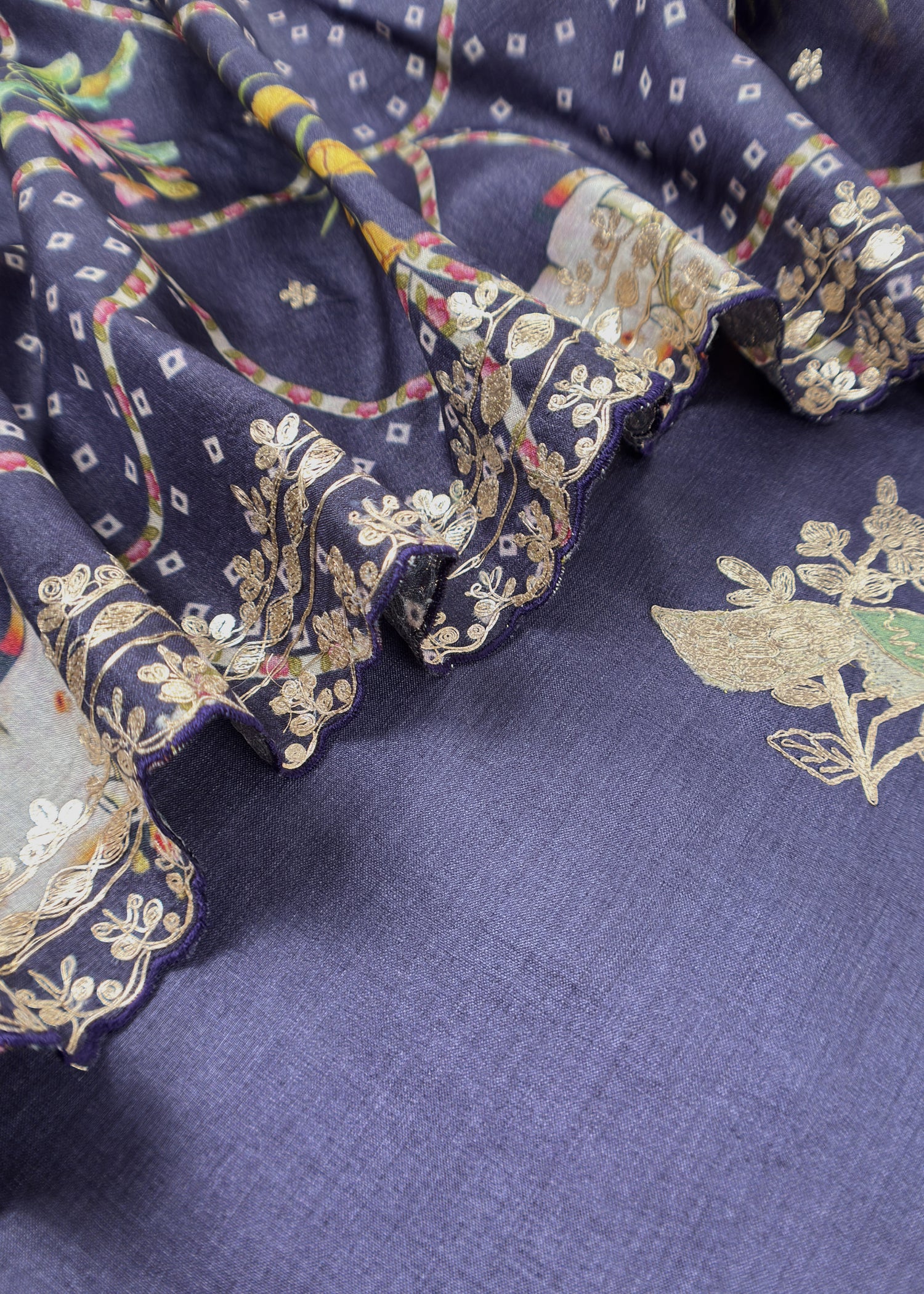 Denim Blue Munga Tussar Kurta And Pichwai Dupatta With Pitta Work