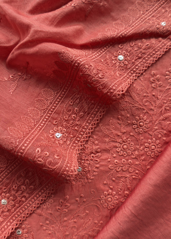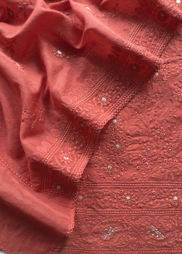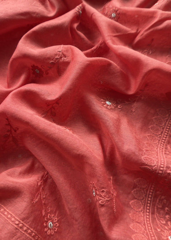 Desire Red Chikankari Embroidered Mul Cotton Unstitched Suit Fabric