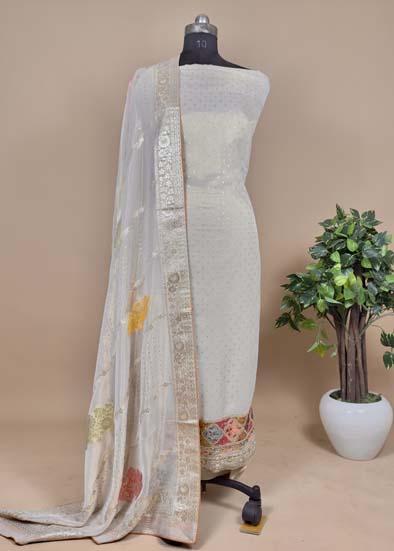 Bold, fresh and light weight, these suit are handwoven in pure tissue silk. They honour the suprising beauty of subtle zari.