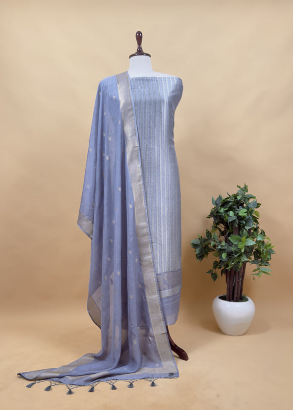 English Blue Brocade Silk Suit Fabric with Gold Weaving