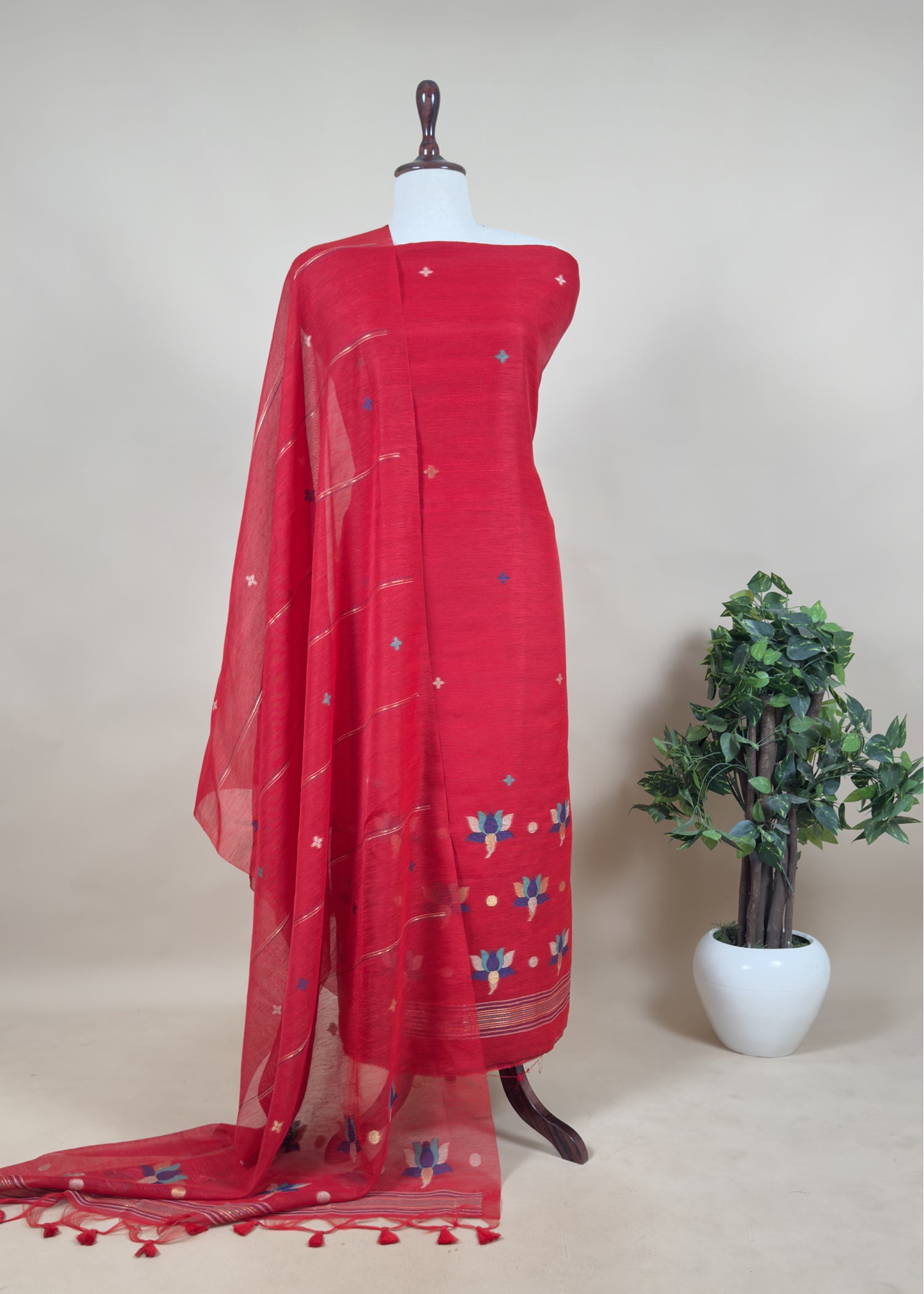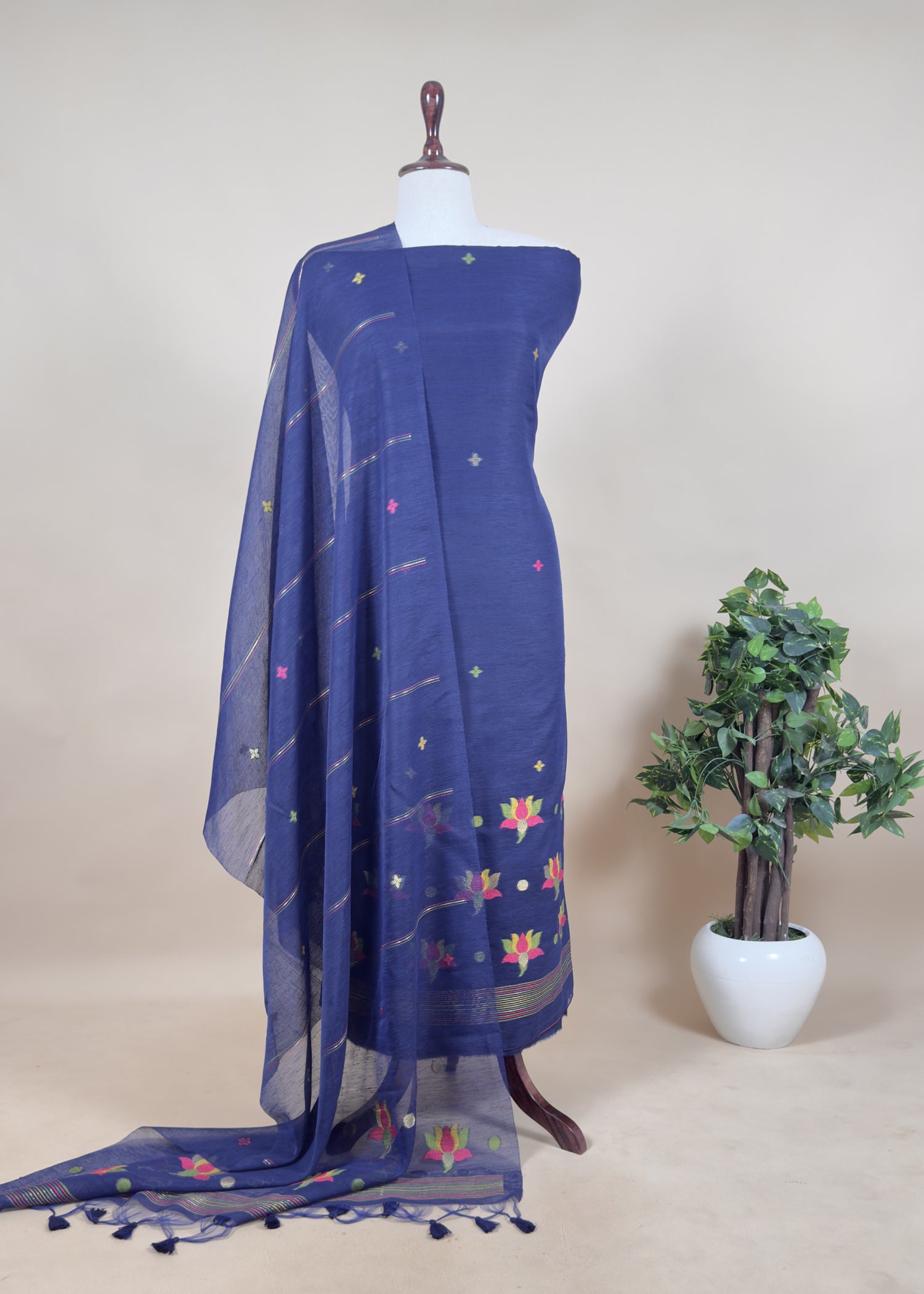 Firozi Floral Jamdani Weaved Unstitched Suit In Chanderi