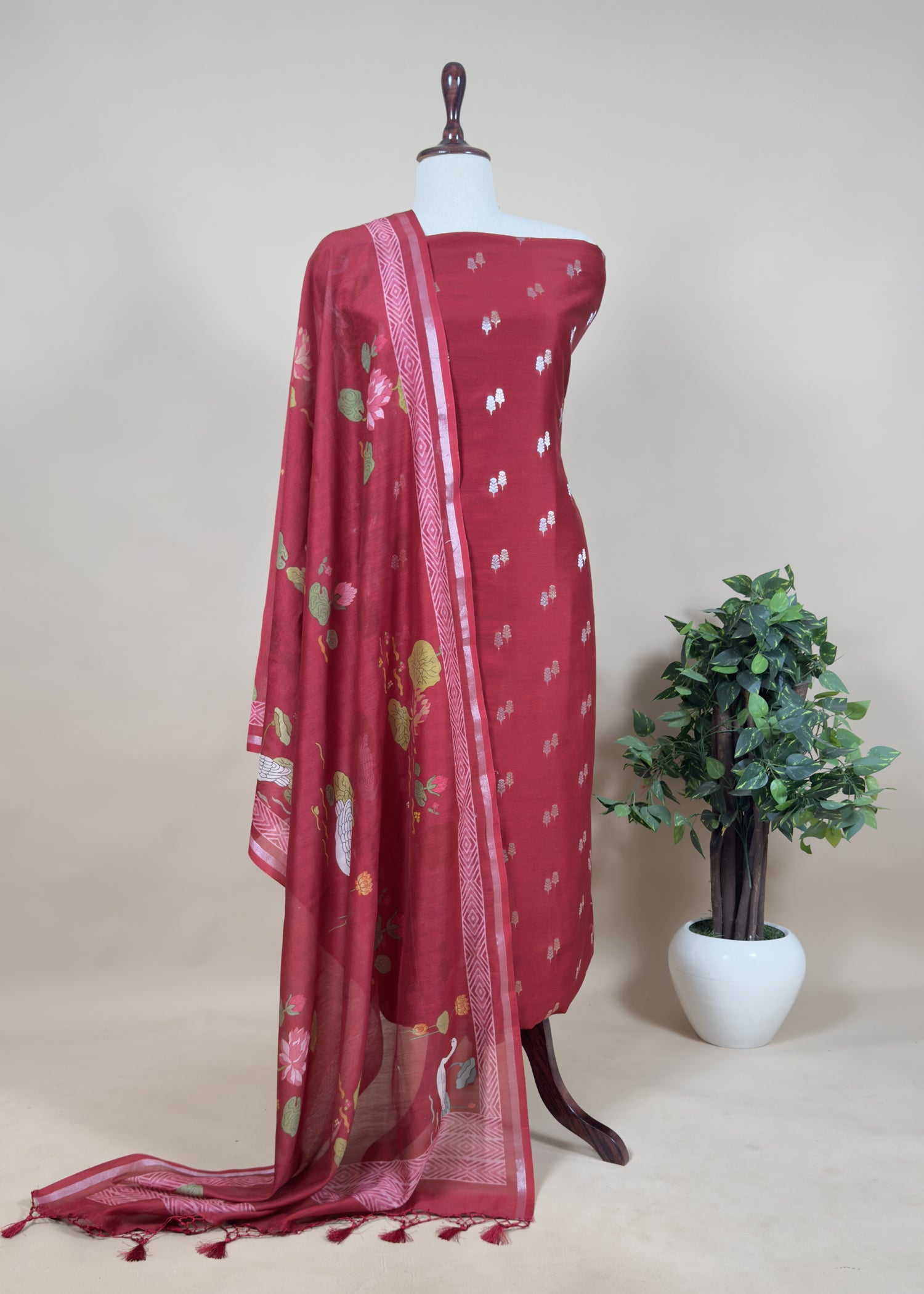 Flamingo flables Plum Handloom Banarasi unstitched suit set
