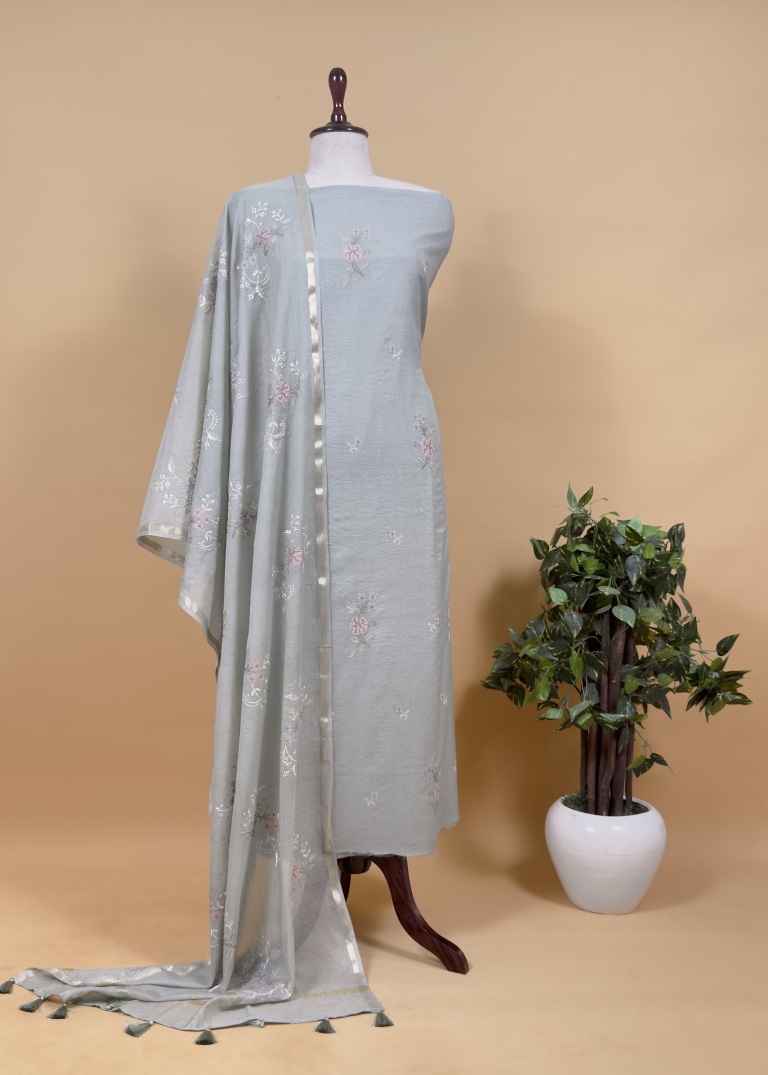 Flamingo Pink Pure Mul Cotton Suit with Cross Stitch Embroidery