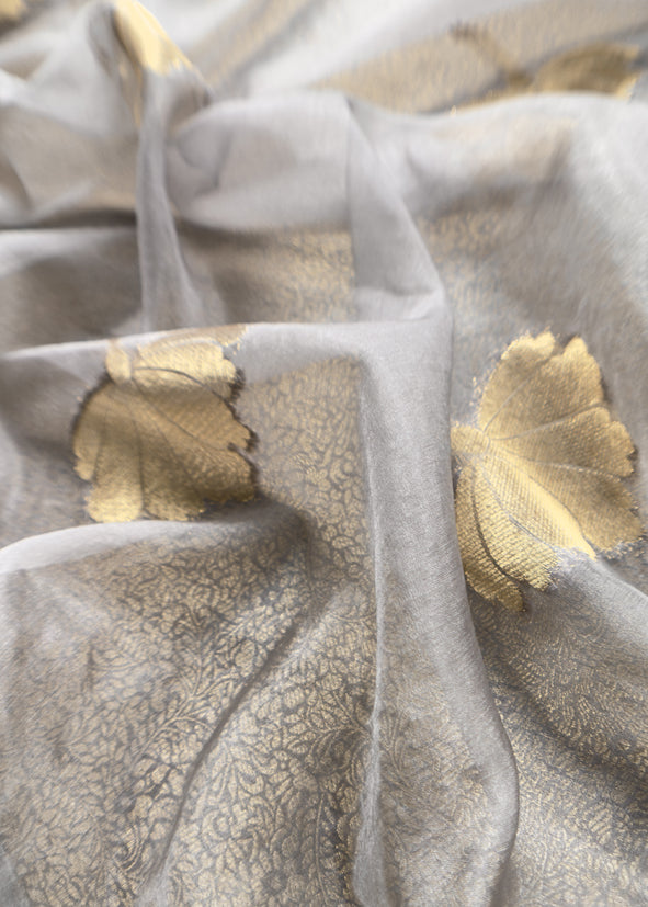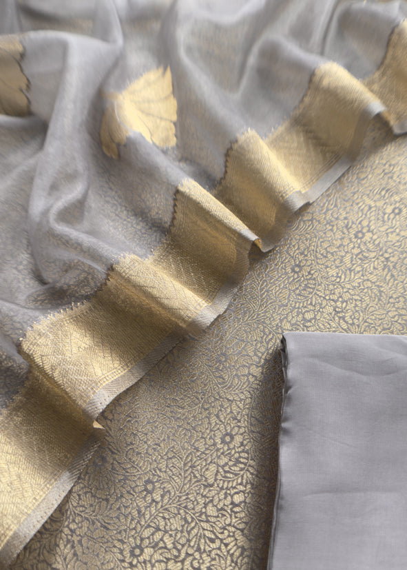 Gray Brocade Kurta With Organza Dupatta