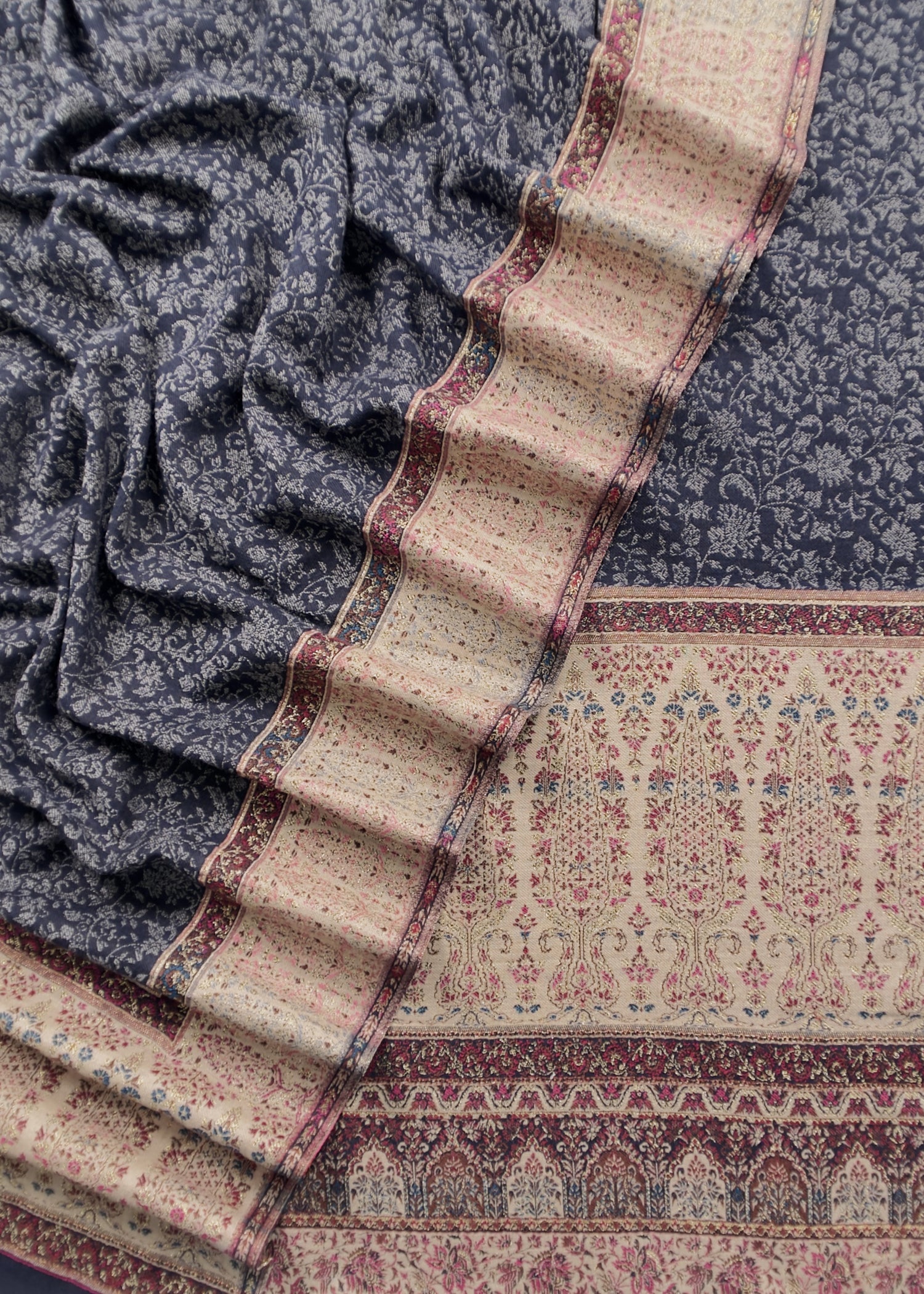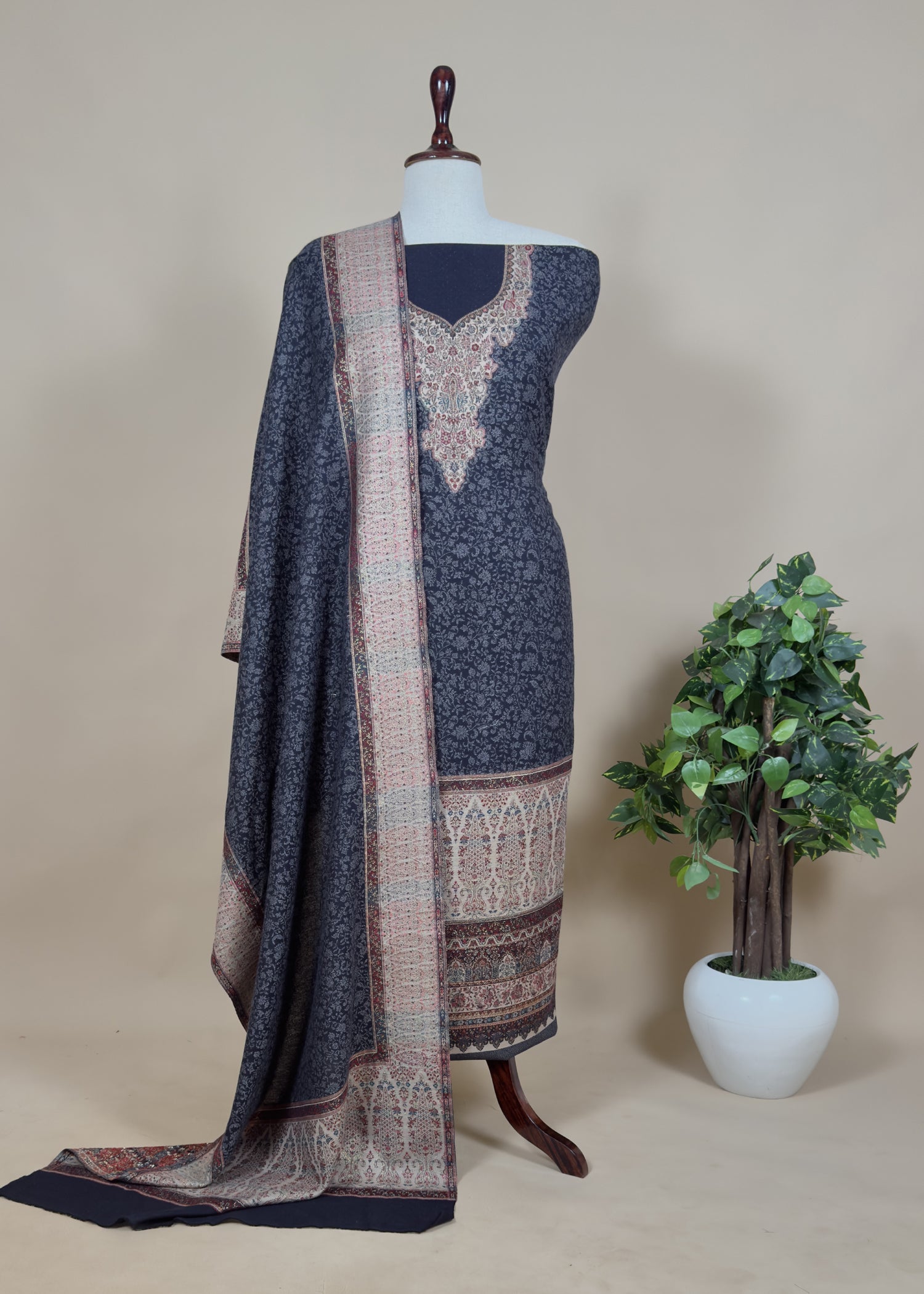 Gray Pashmina Unstitched Suit With Kani Weaving