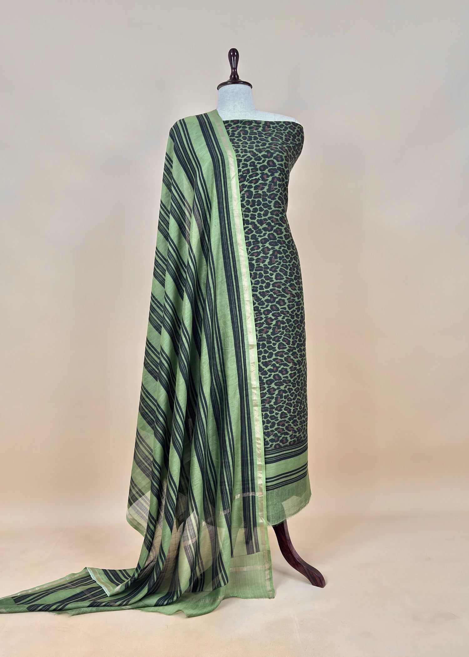 Green and Black Pure Maheshwari Silk Suit With Dupatta