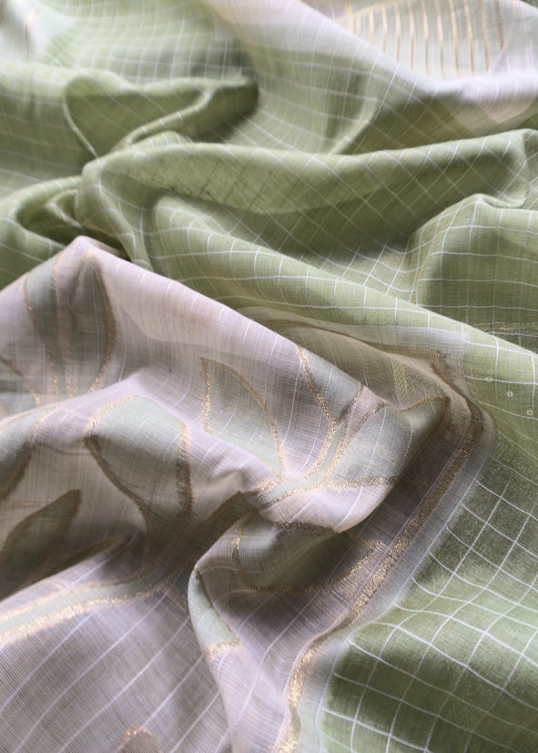 Green Chanderi Kurta With Appliqué Work And Dupatta With Jamdani Weaving