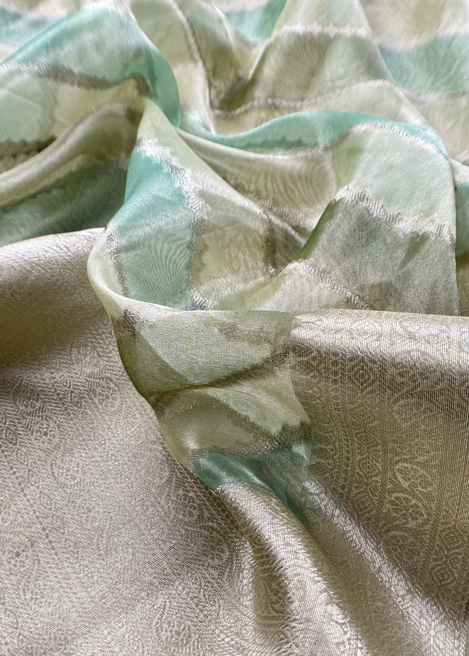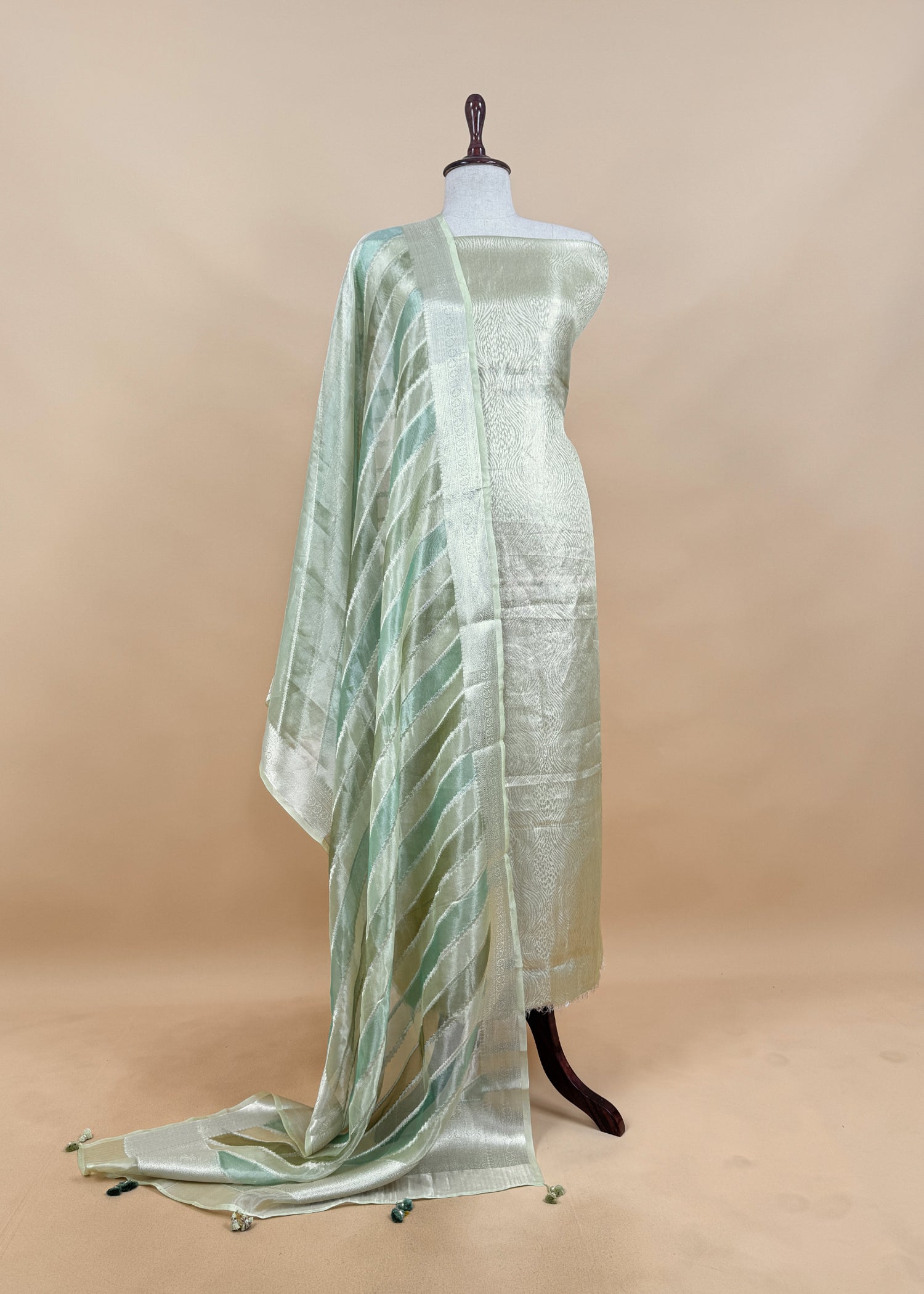Green Designer Pure Brocade Tissue Silk Suit fabric