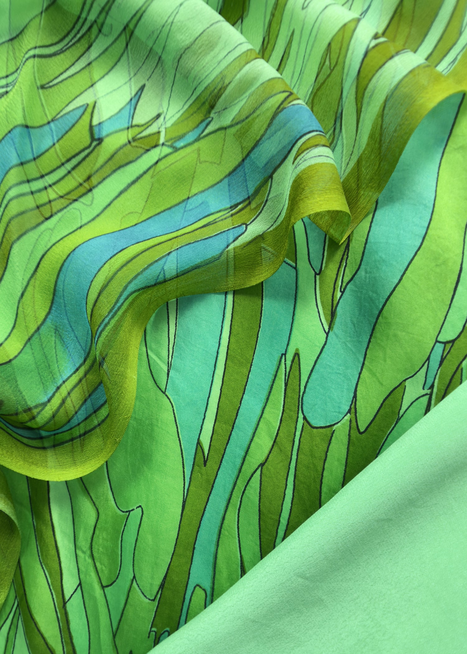 Green Satin Crepe Unstitched Suit With Chinon Dupatta