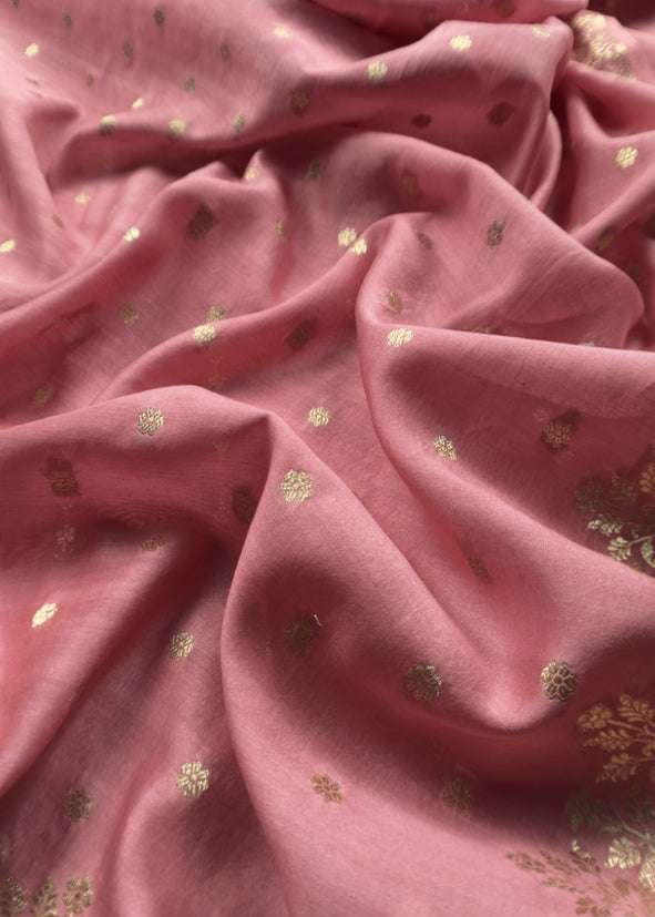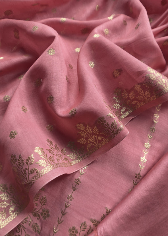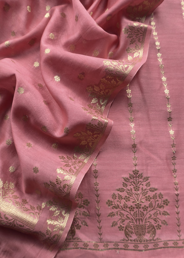 Guldasta 2025 Mauvish Pink Pure Silk Suit With Gold Weaving