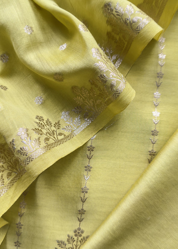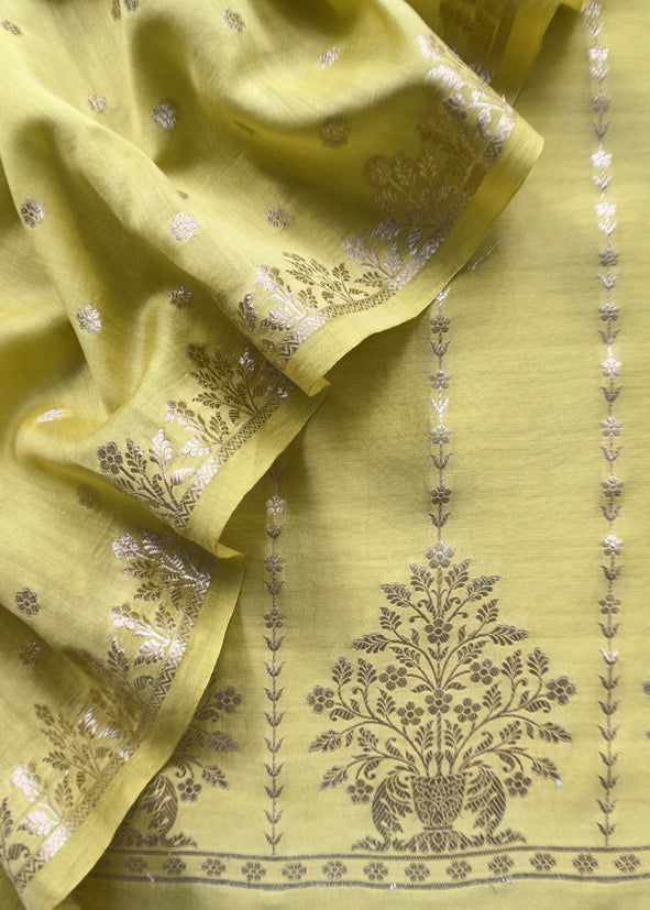 Guldasta 2025 Pear Green Pure Silk Suit With Gold Weaving