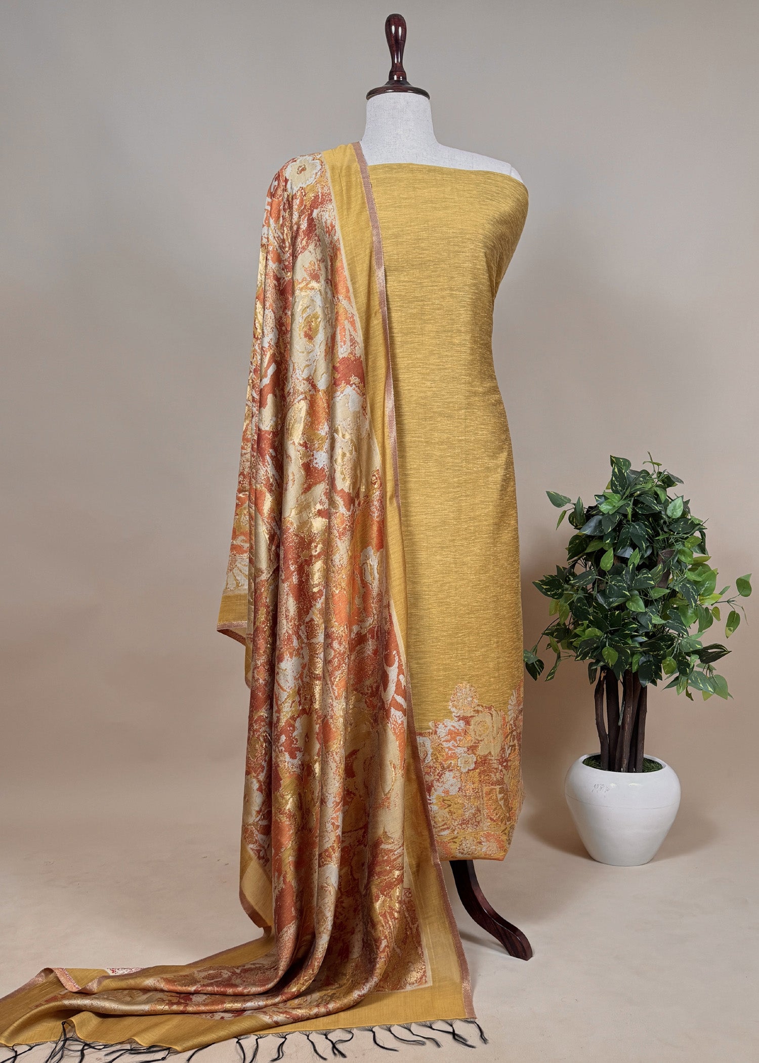 Only dry cleaning is recommended for this fabric to maintain its vibrant colors and ensure gentle care, preventing shrinkage or fading. Treat your Kalasheel dupatta suit with love and pass it on as a cherished family heirloom.
