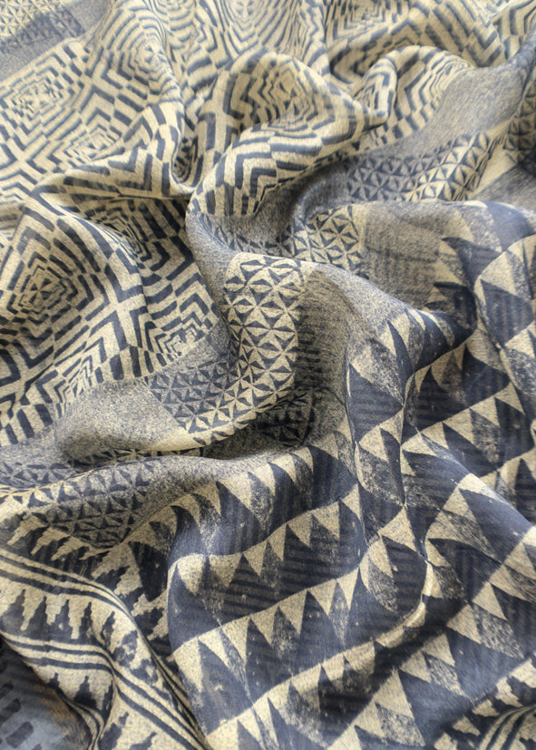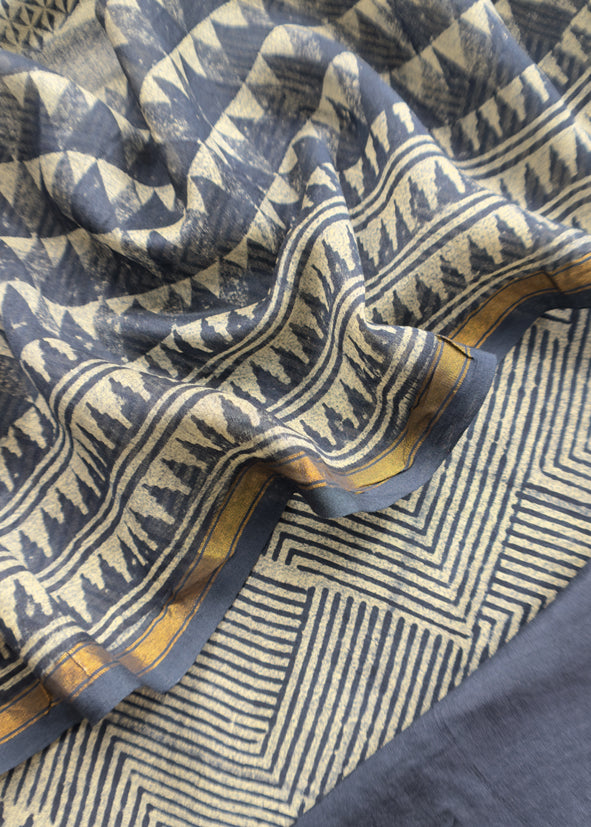 Indigo Paisley Block Print Pure Maheshwari Silk Unstitched Suit Fabric
