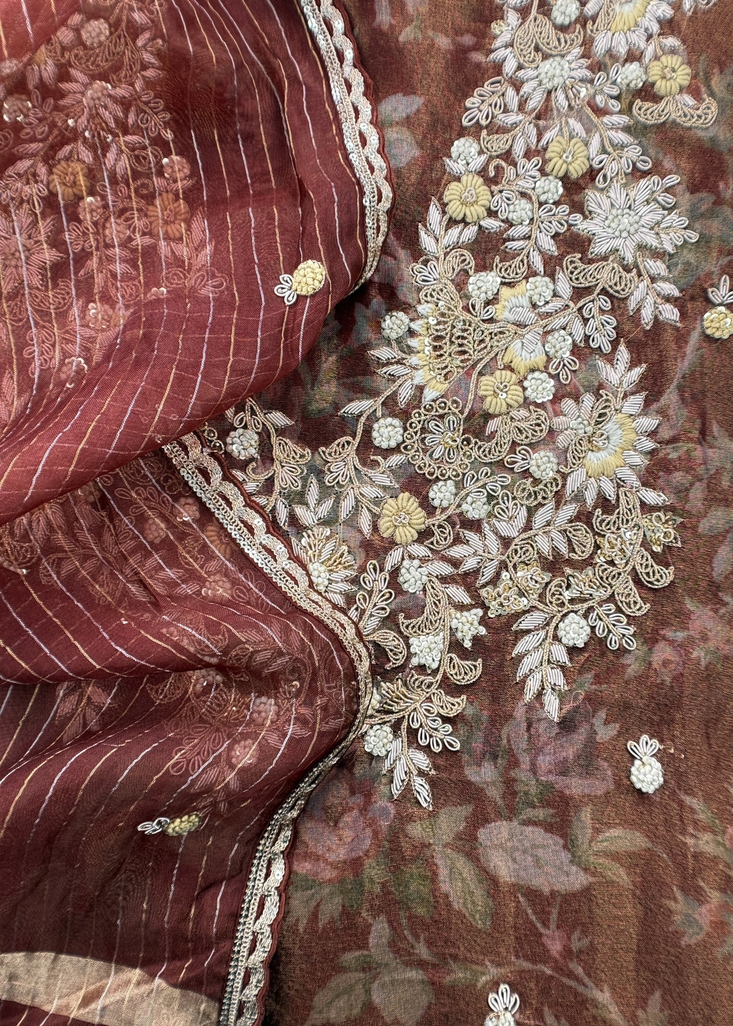 Kalasheel Luxe Brown Pure Organza Suit With Zardosi And Dabka Handwork