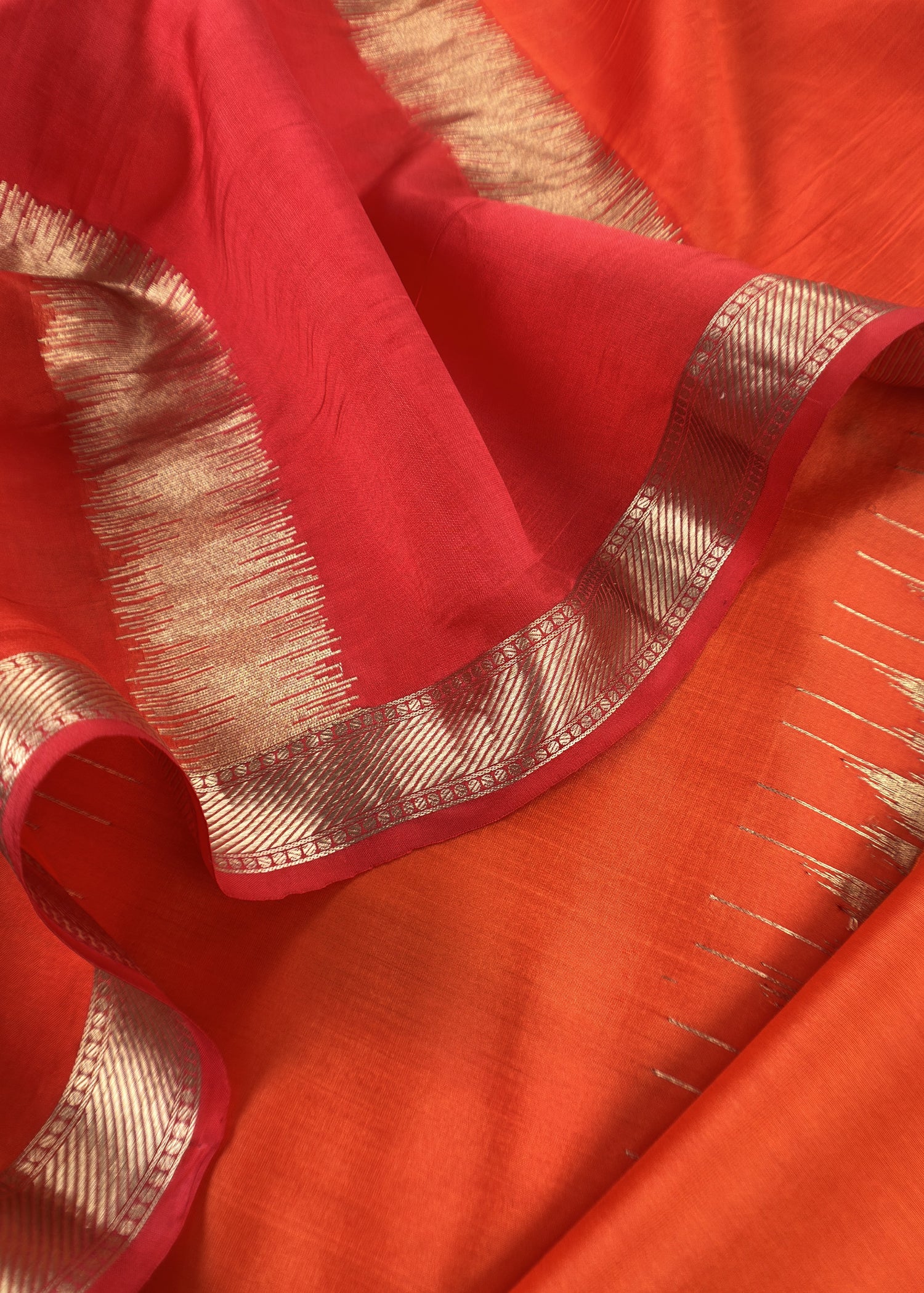 Orange Kalasheel Luxe Deep Orange Chiniya Silk With Gold Ikkat Weave