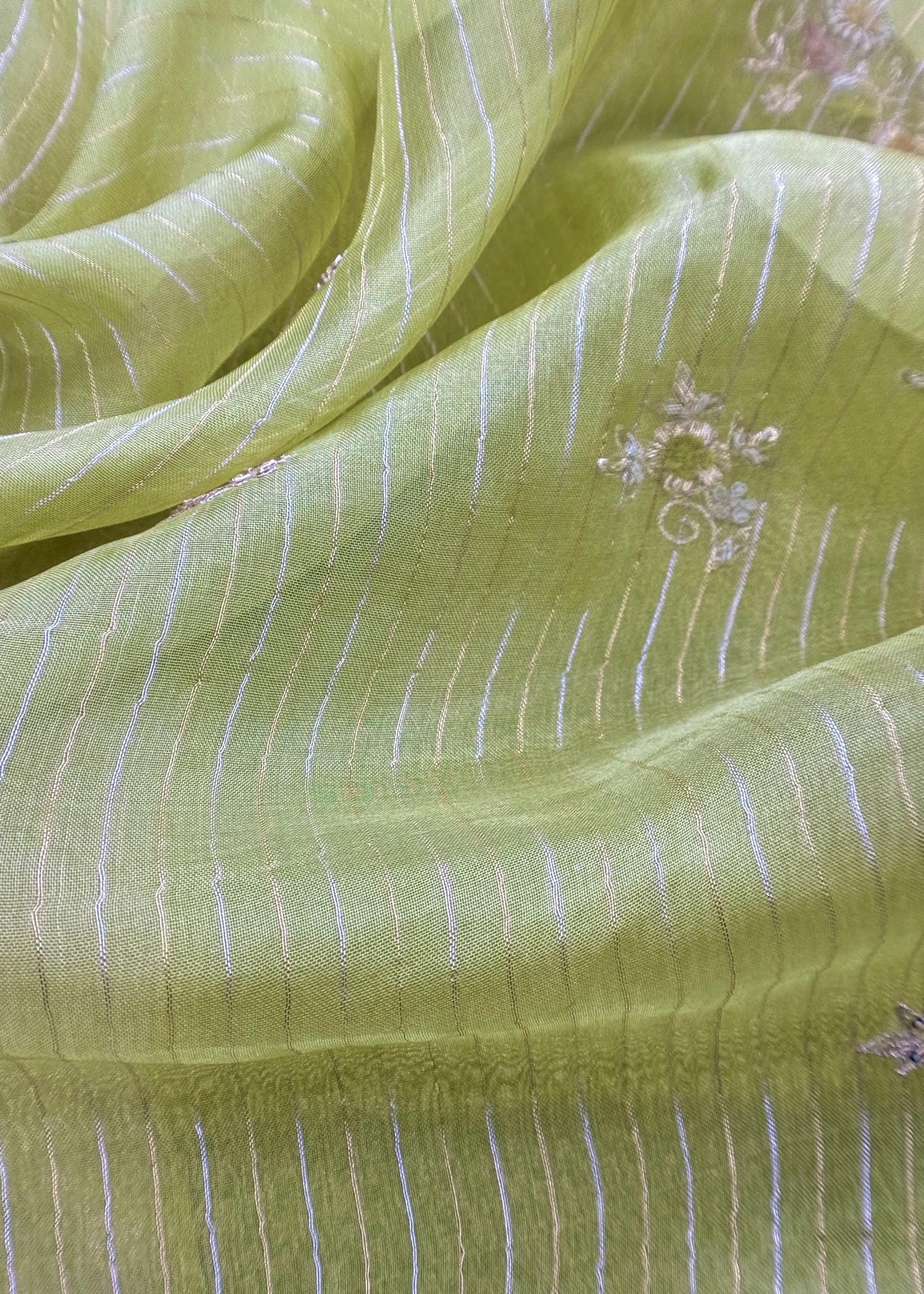 Matching pure organza lure. dupatta has all over dabka bootis and scalloped cutdana borders.