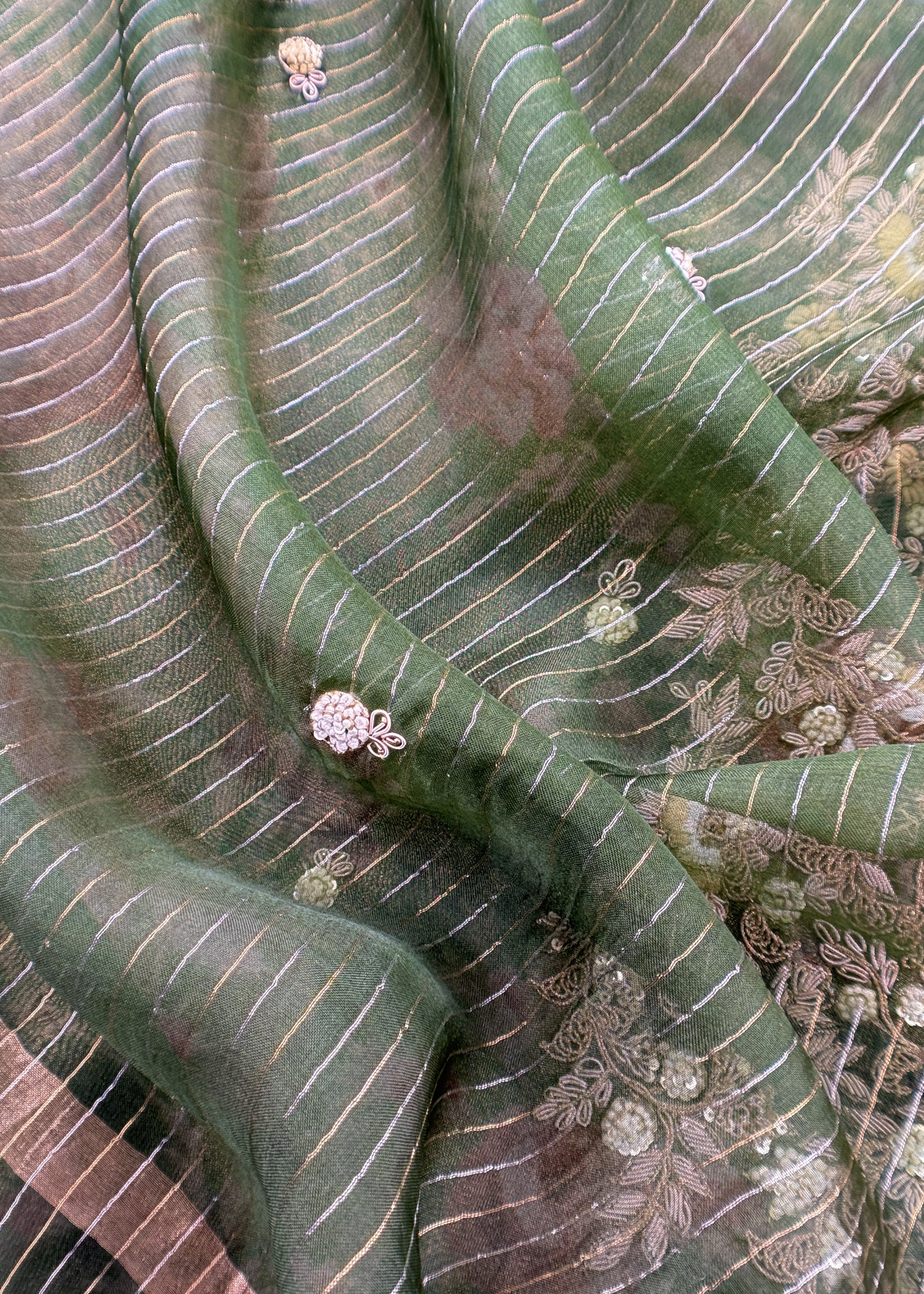 Kalasheel Luxe Green Pure Organza Suit With Zardosi And Dabka Handwork