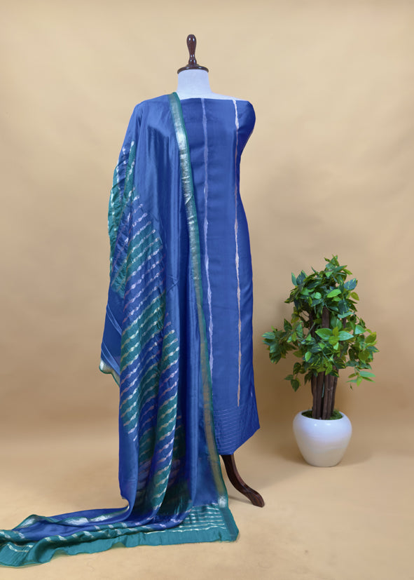 Kalasheel Luxe Handwoven Royal Blue And Saffron Banarasi Silk Suit With Zari Weaving